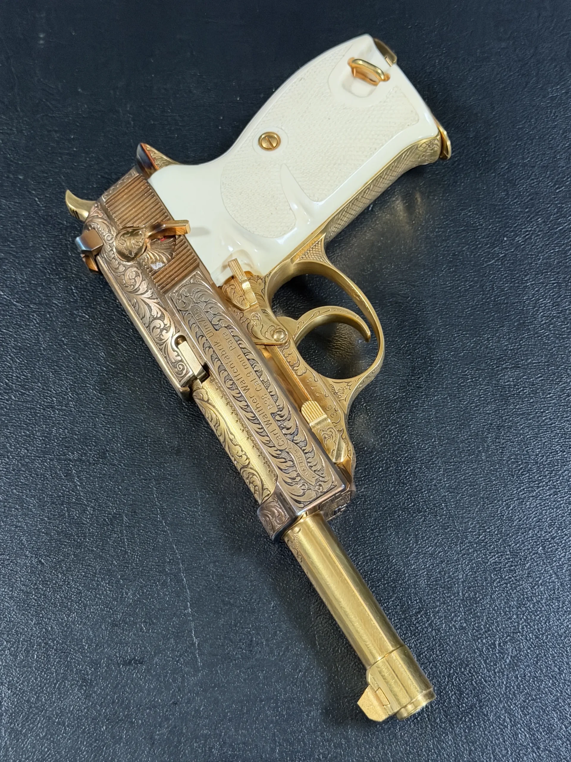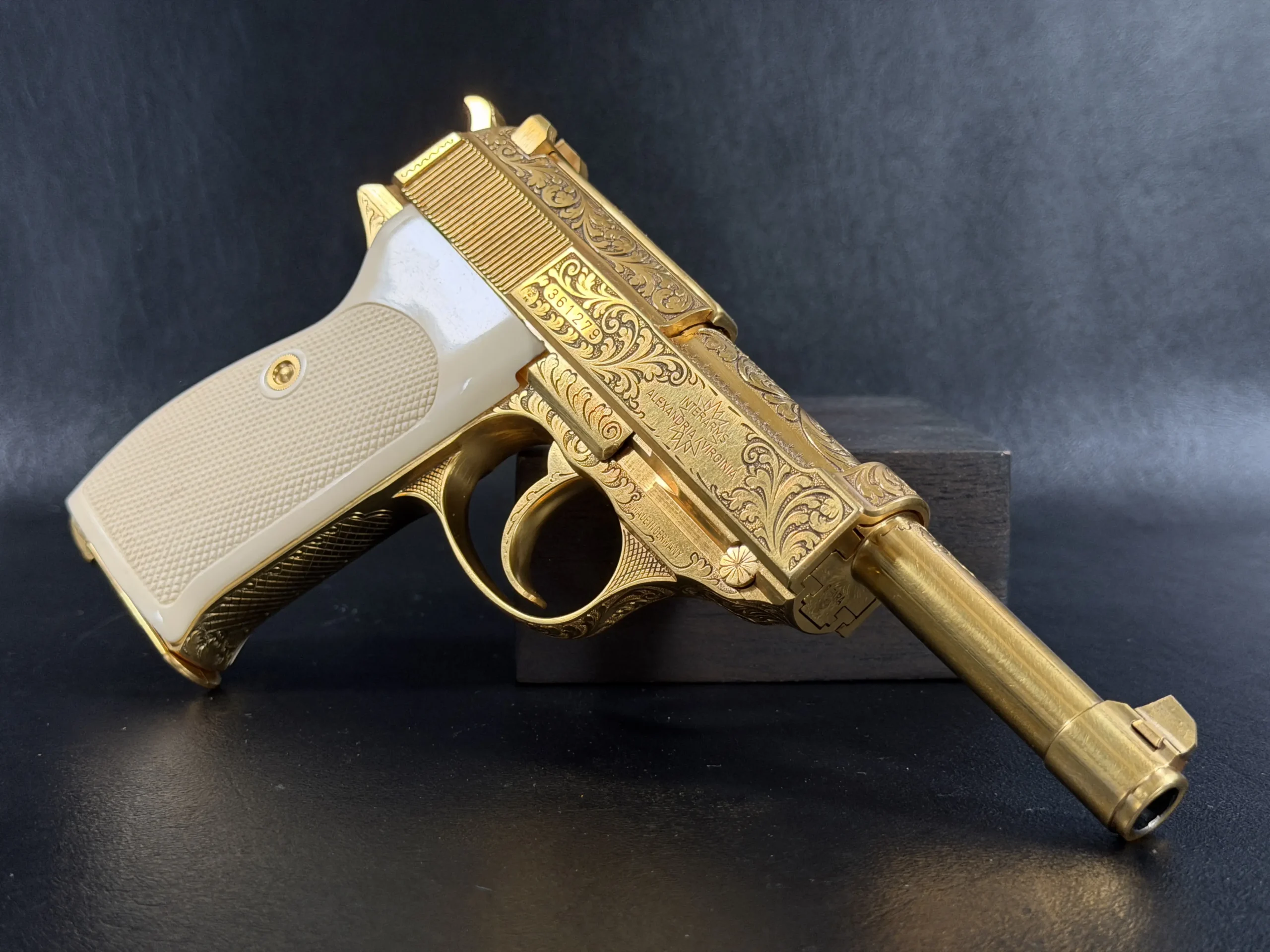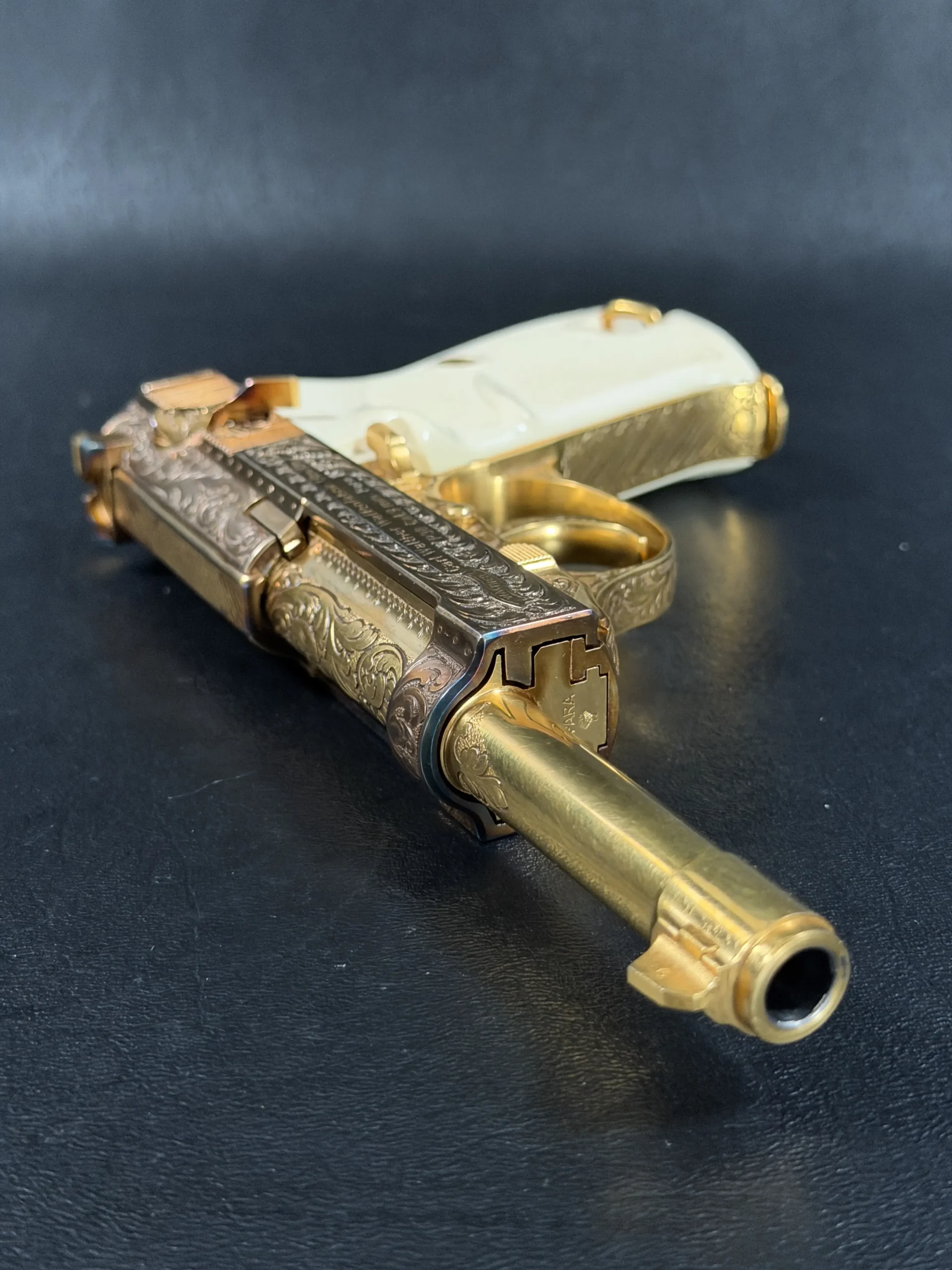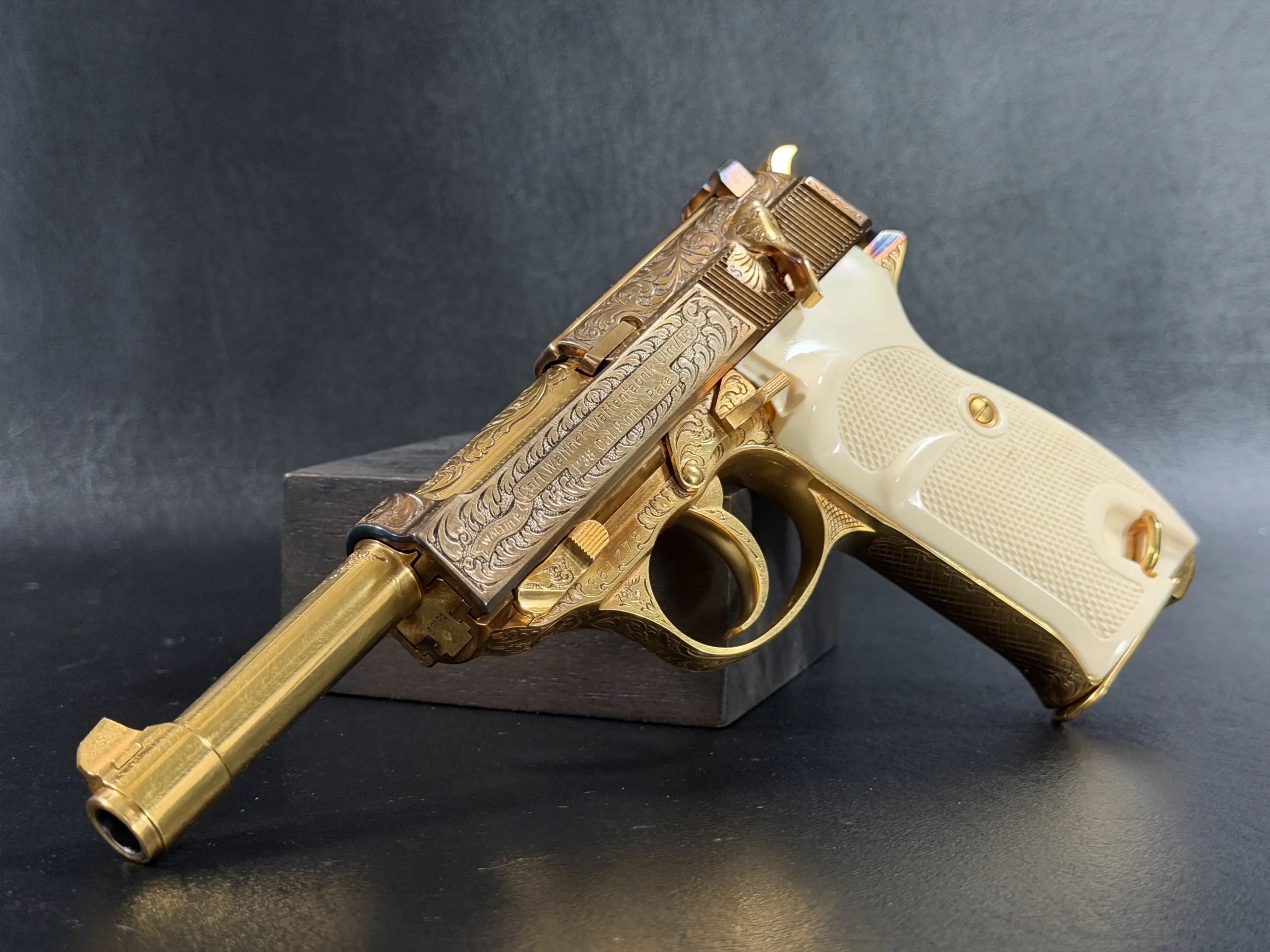 For the collector who values symmetry, rarity, and visual impact, this pair stands as a centerpiece. Whether displayed individually or as the pair they were meant to remain, these Gold Engraved Walther P38 pistols embody the intersection of engineering and ornament, military heritage, and refined presentation.