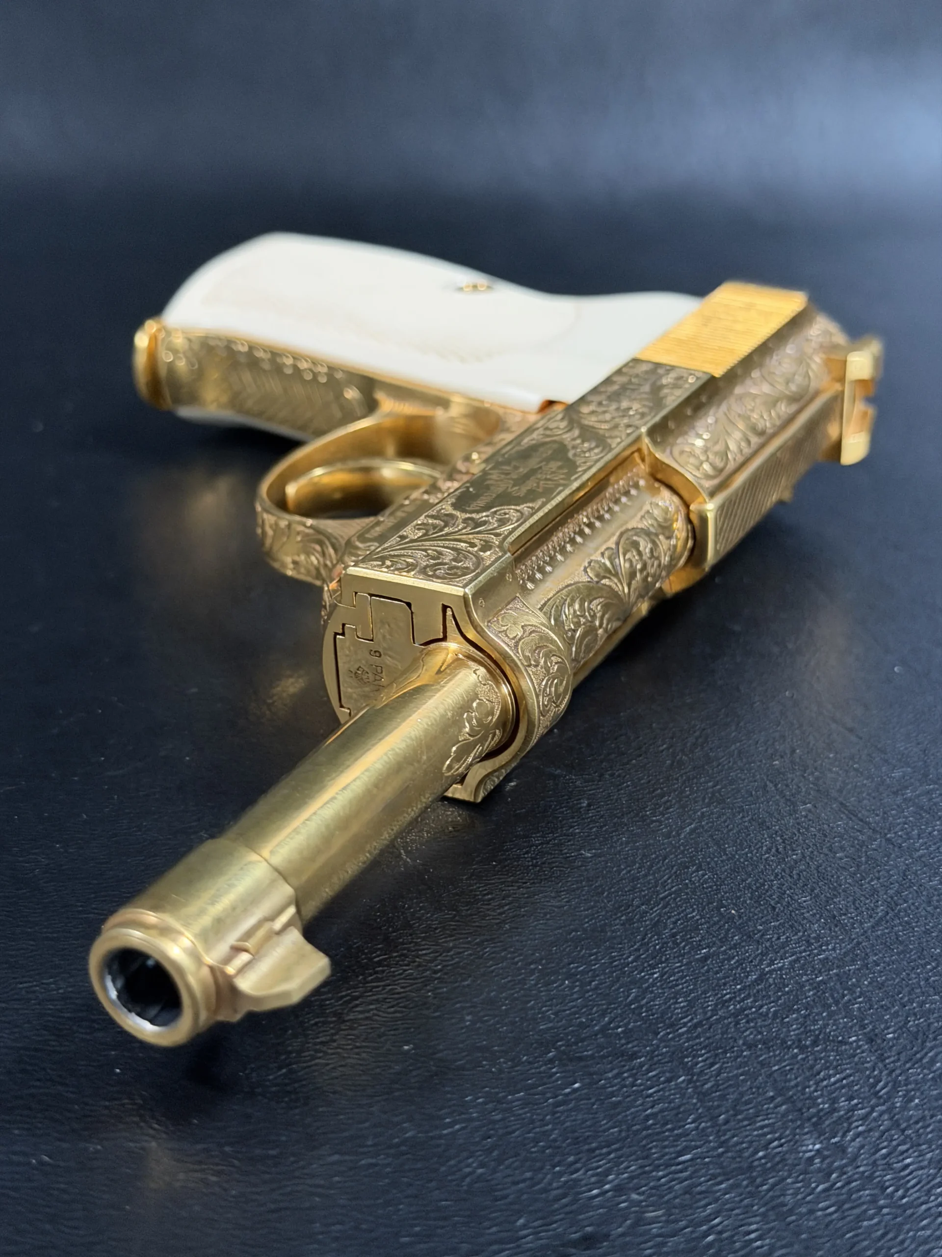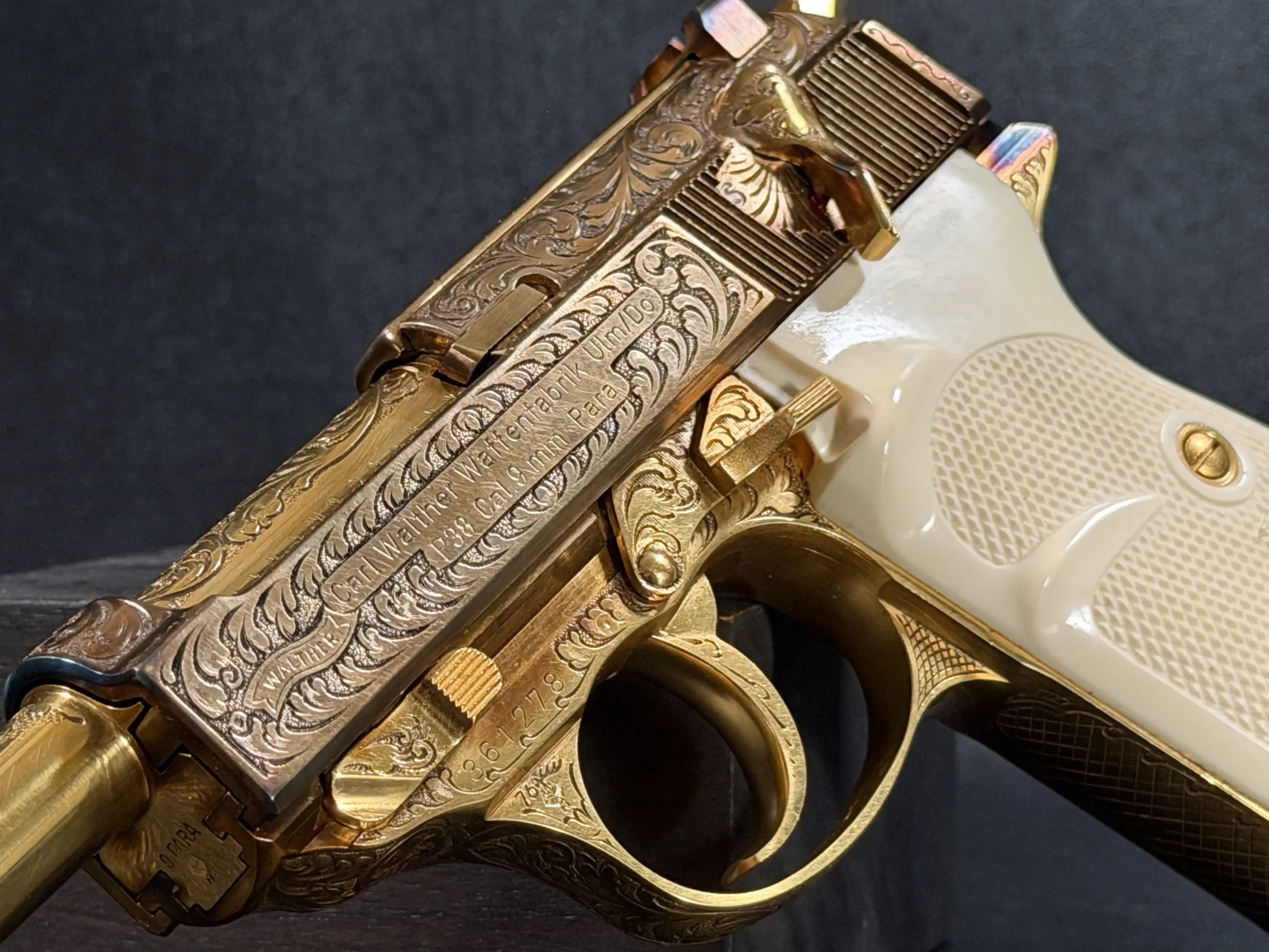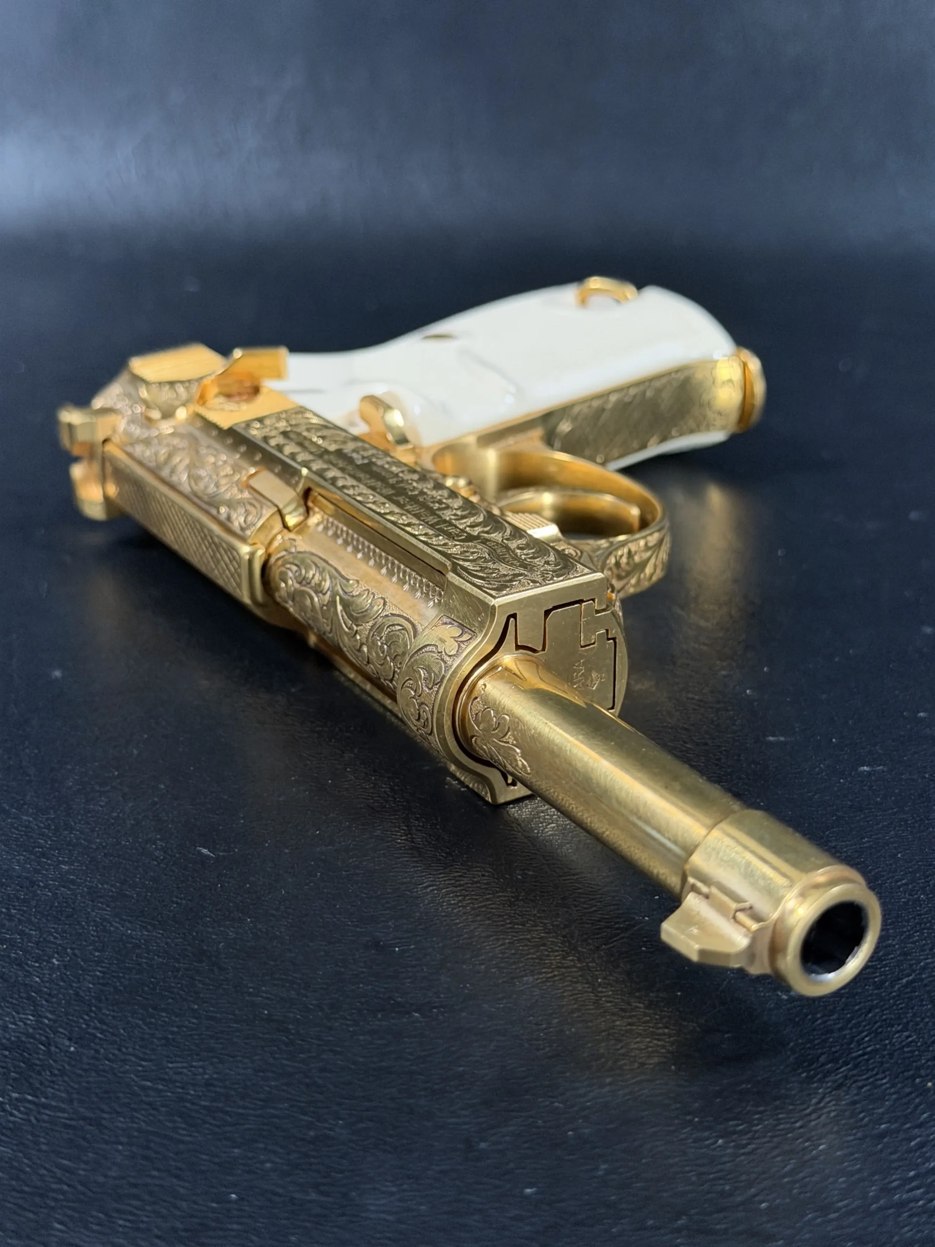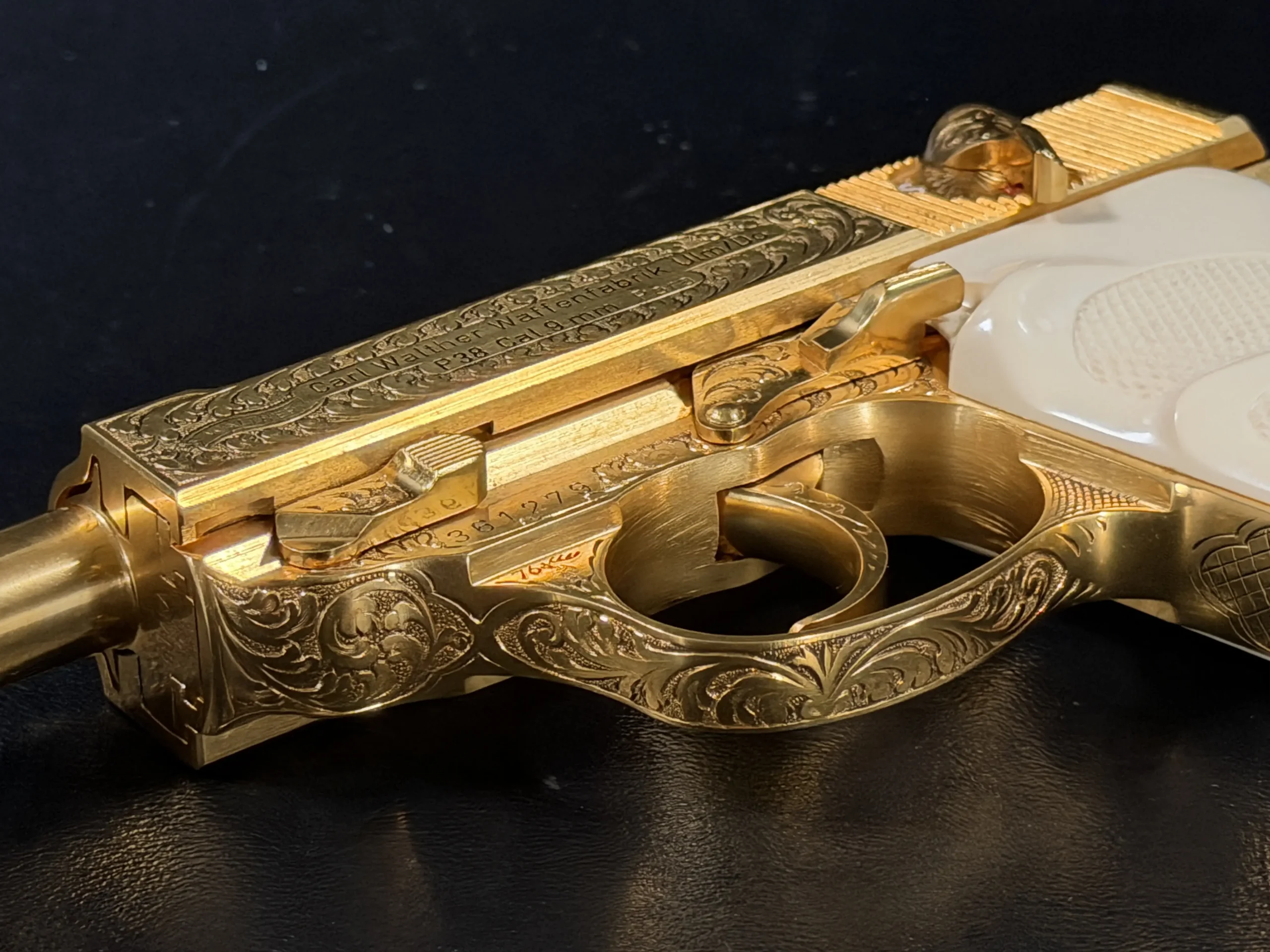 For the collector who values symmetry, rarity, and visual impact, this pair stands as a centerpiece. Whether displayed individually or as the pair they were meant to remain, these Gold Engraved Walther P38 pistols embody the intersection of engineering and ornament, military heritage, and refined presentation.