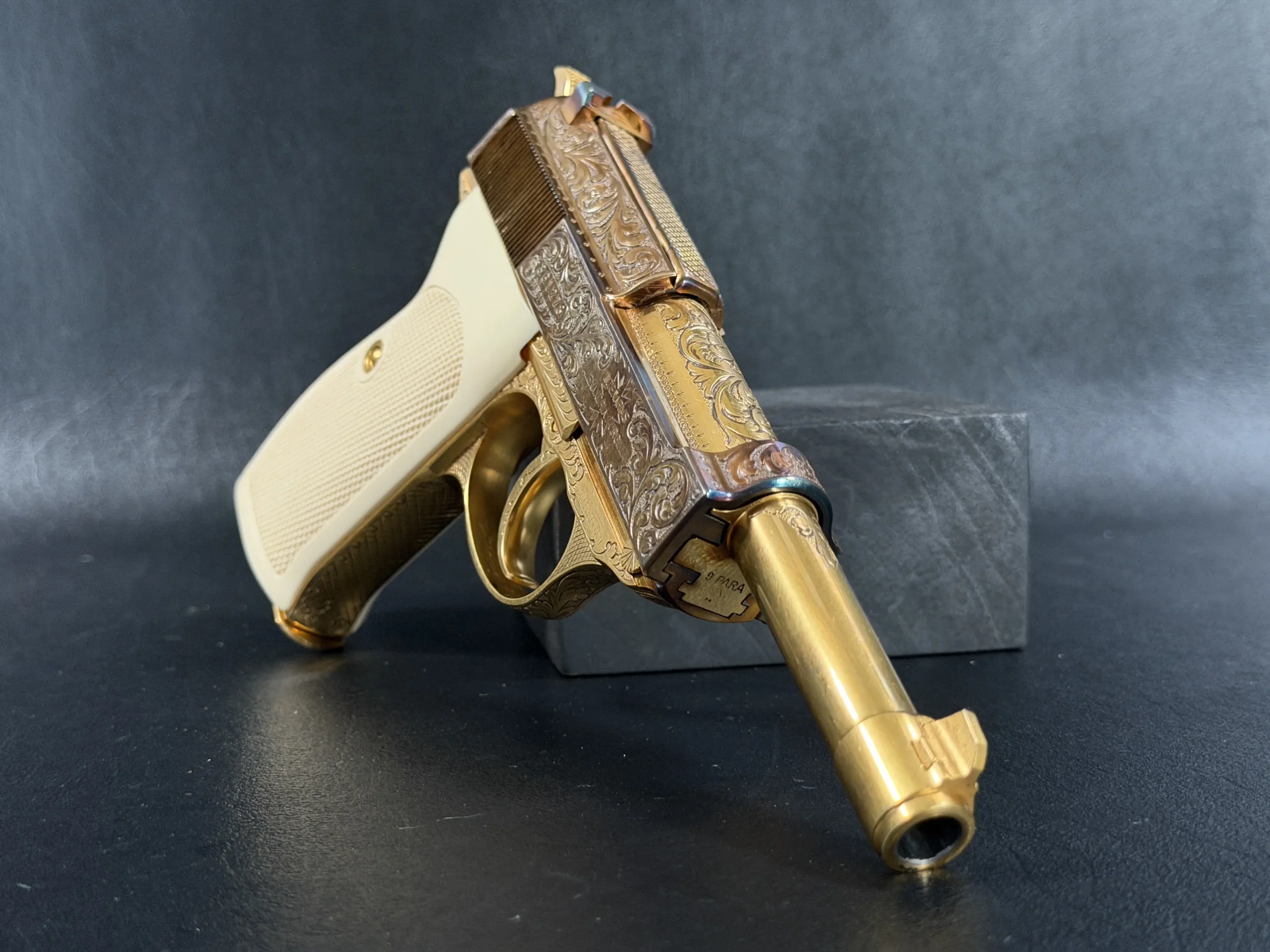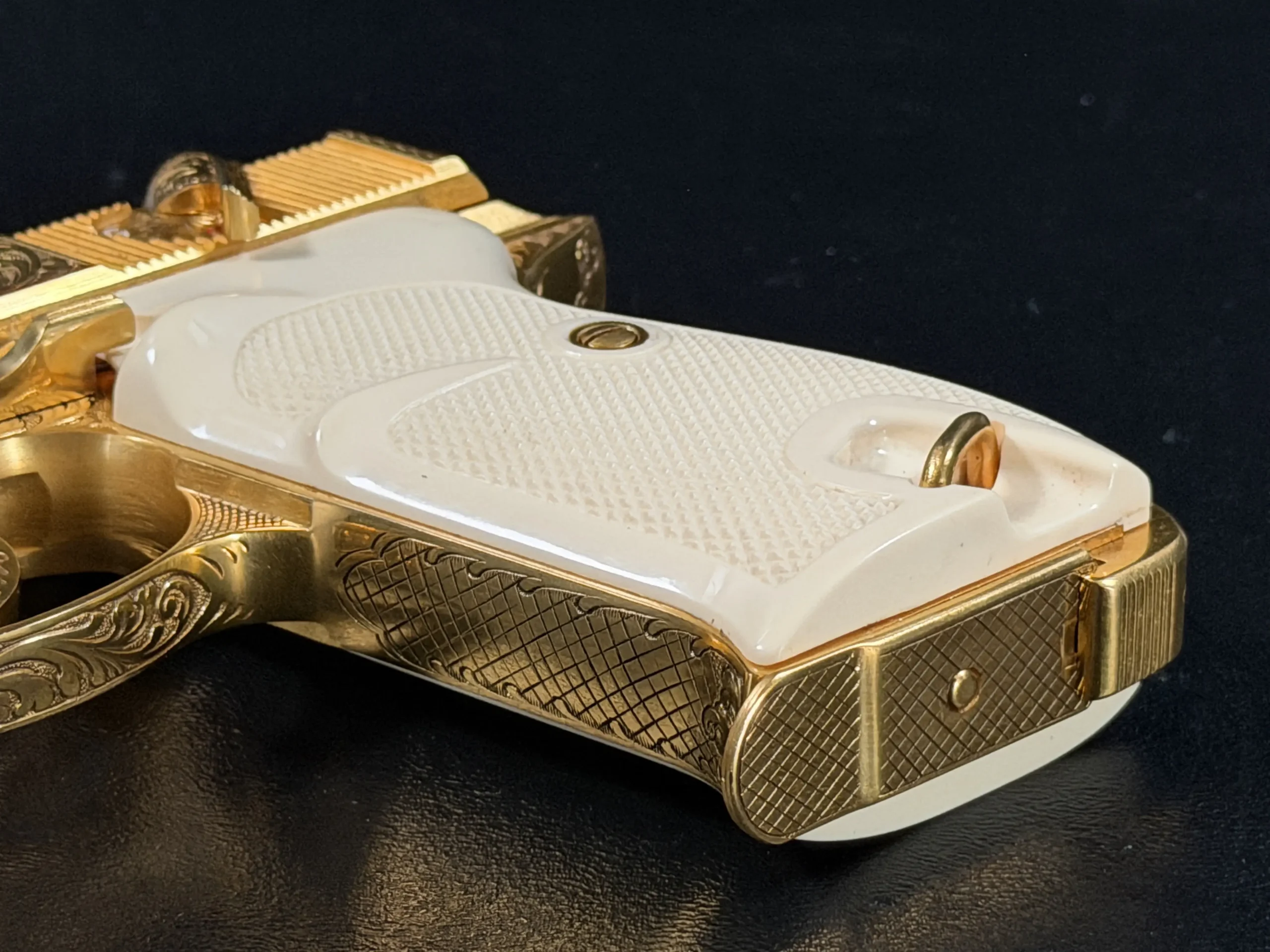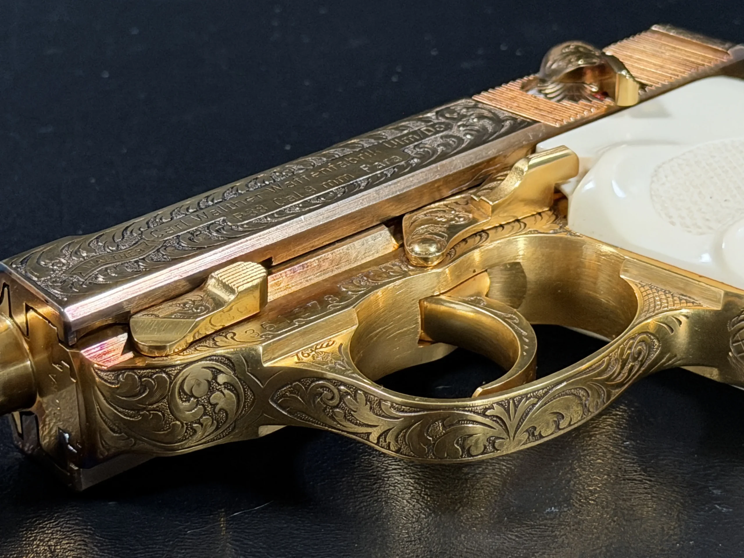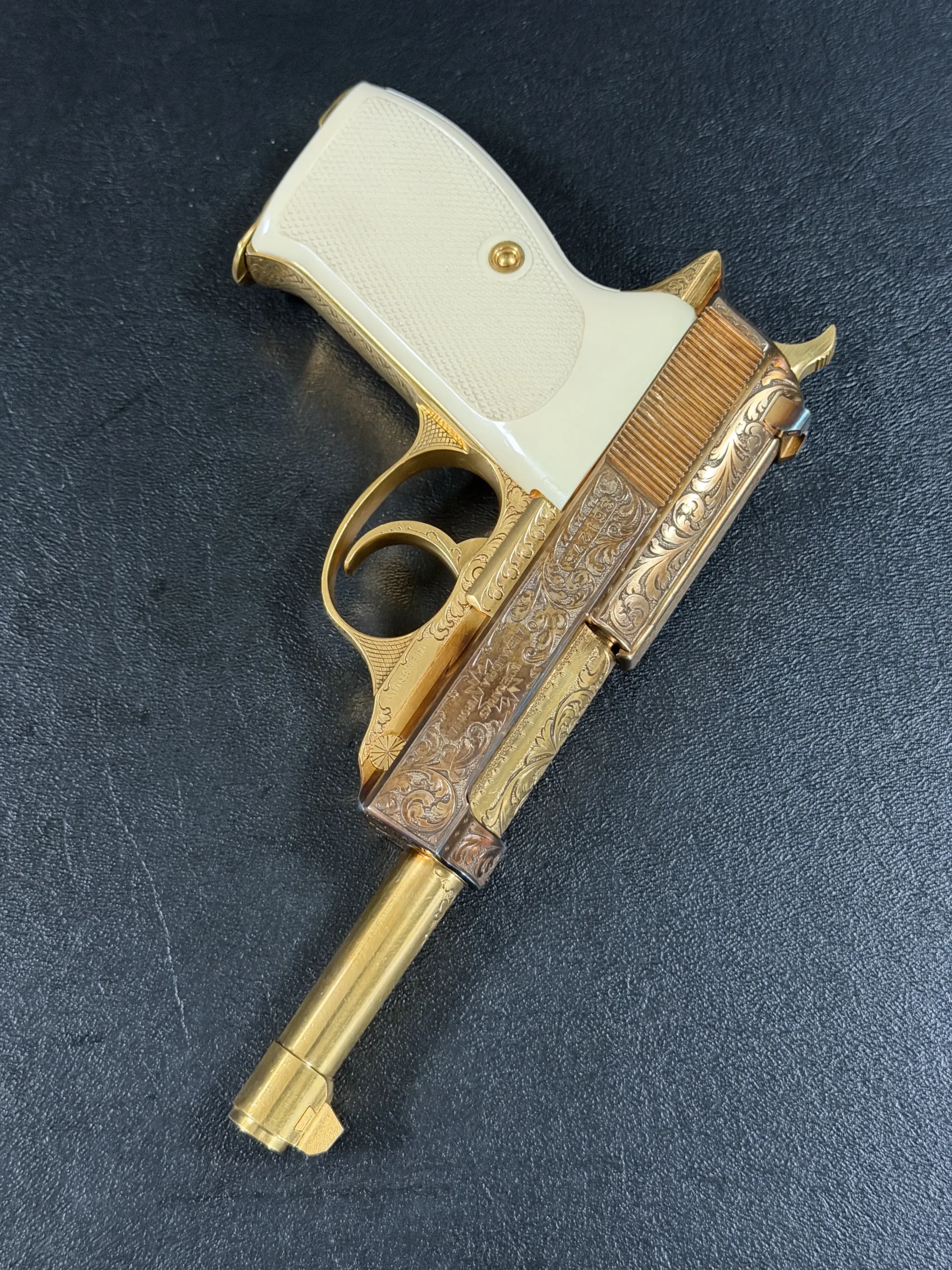 For the collector who values symmetry, rarity, and visual impact, this pair stands as a centerpiece. Whether displayed individually or as the pair they were meant to remain, these Gold Engraved Walther P38 pistols embody the intersection of engineering and ornament, military heritage, and refined presentation.
