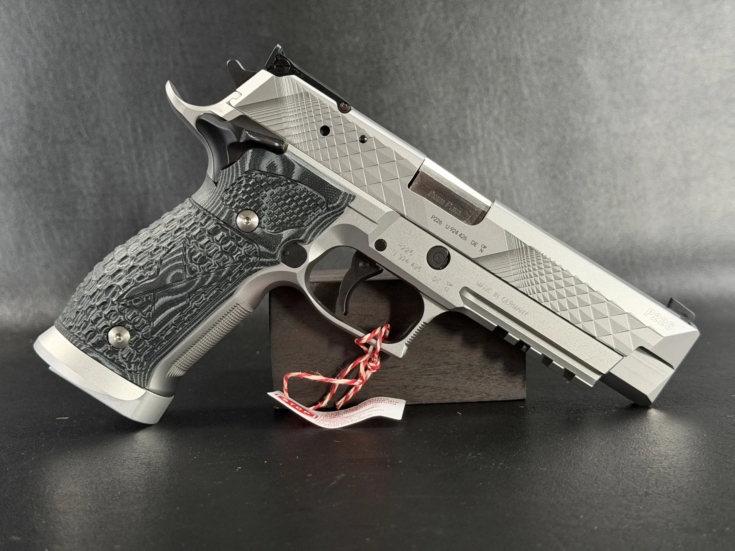 Built on the proven P226 X-Five platform and chambered in 9mm, the pistol maintains the balance and mechanical confidence the X-Series is known for while standing apart as fundamentally different. Every component presents as intentionally finished, cohesive, and refined, with matching factory-fitted elements throughout, underscoring its origin as a unified design exercise rather than an assembled variant.