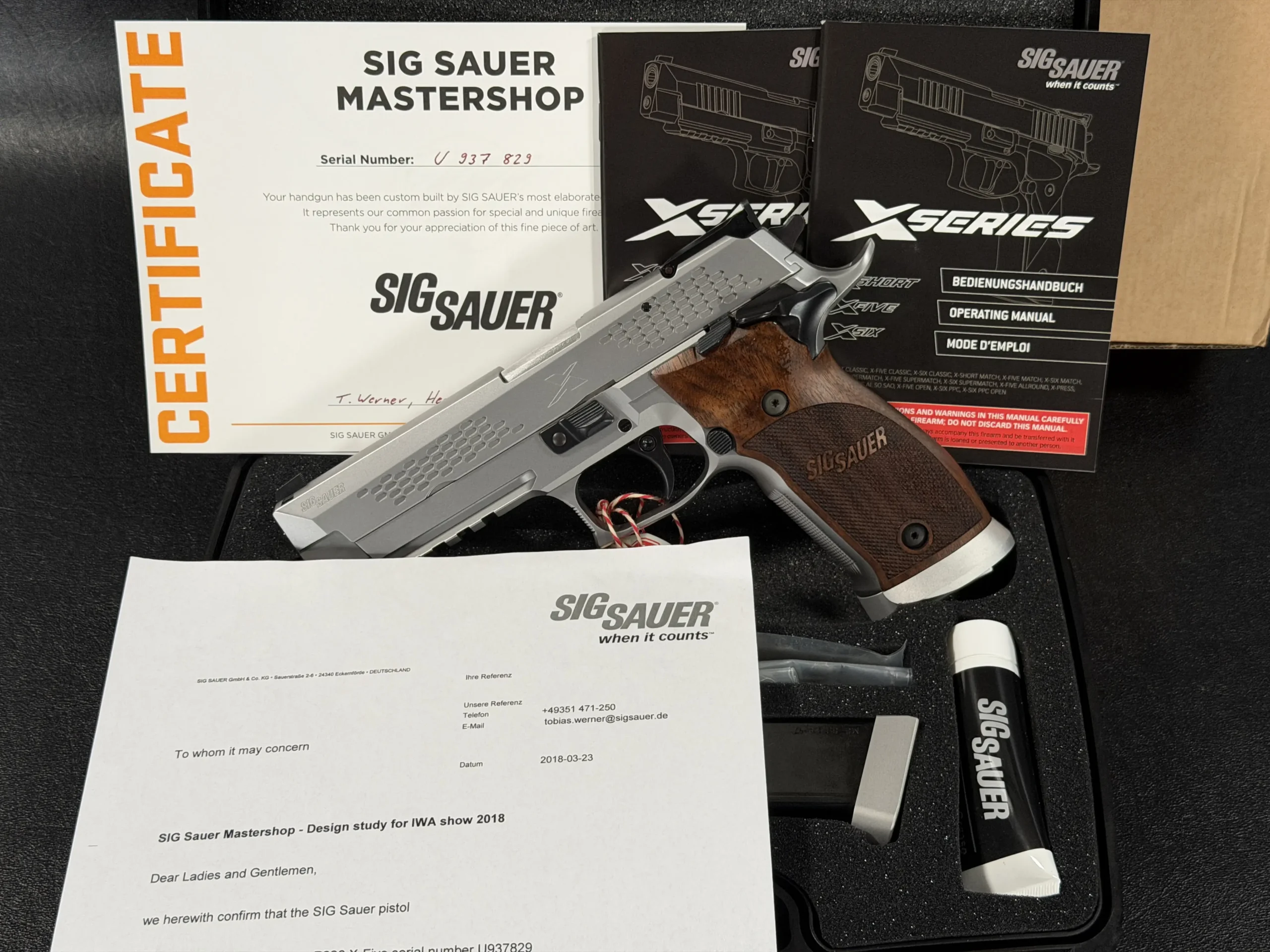 Built on the proven P226 X-Five platform and chambered in 9mm, this prototype retains the unmistakable handling characteristics and mechanical precision the X-Series is known for, while pushing far beyond standard production boundaries. Every component exhibits Mastershop level execution, with exceptional fit, finish, and attention to detail throughout.