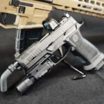 Pairing seamlessly with the R1 is the Sig Sauer P320 NSF (Navy Seals Foundation) limited edition pistol, complete with a threaded barrel for silencer attachment. Its Sig Sauer Romeo 1 red dot sight delivers rapid and intuitive target acquisition, while the SureFire X300 Turbo light enhances visibility in all lighting conditions, making it an ideal choice for home defense and tactical operations.