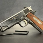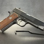 The M15 itself is a unique chapter in American military arms history. It’s the only sidearm ever designed and manufactured exclusively for issue to U.S. Army General Officers. Think of it as the military’s bespoke pistol—created to replace the aging Colt Model 1903 and 1908 pocket pistols. Only 1,004 were produced starting in 1972, making every example a rarity. This one, based on the Colt Commander frame with a 4.5” barrel, blends a sleek 1911A1 silhouette with select upgrades: a chrome National Match-style trigger and a checkered front strap for added grip and control.