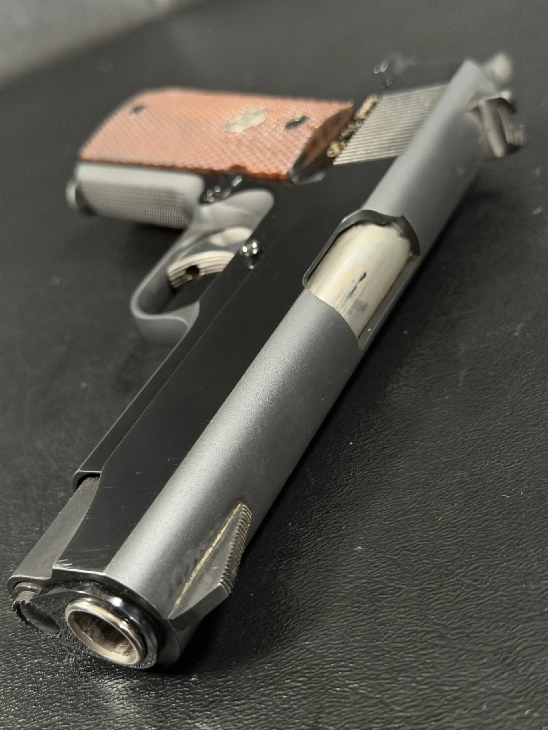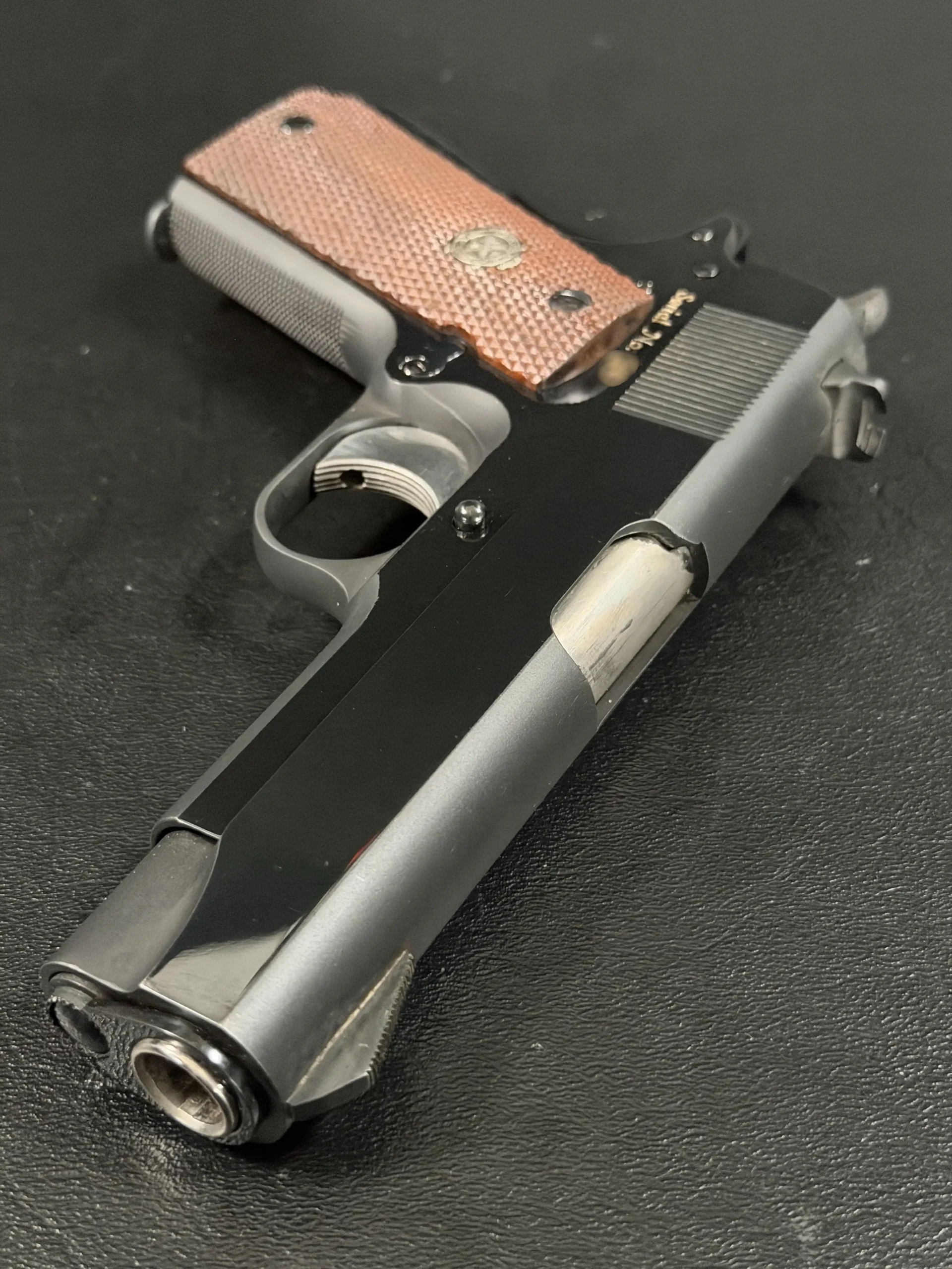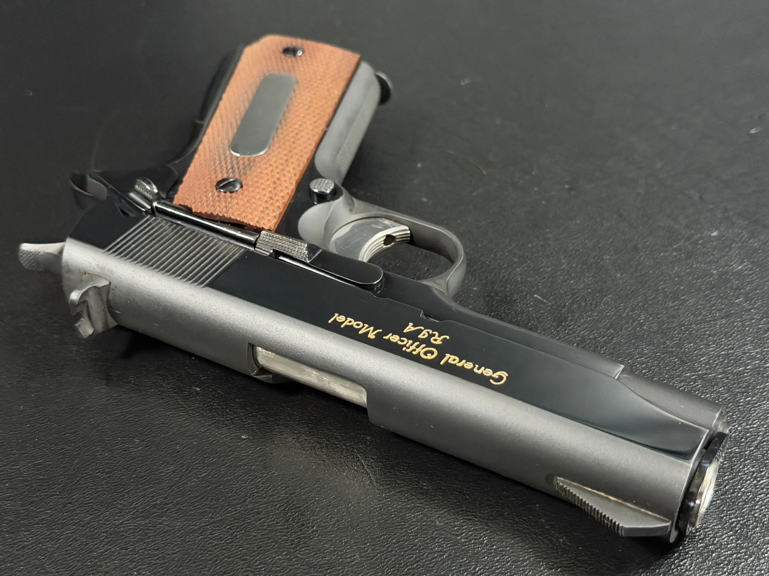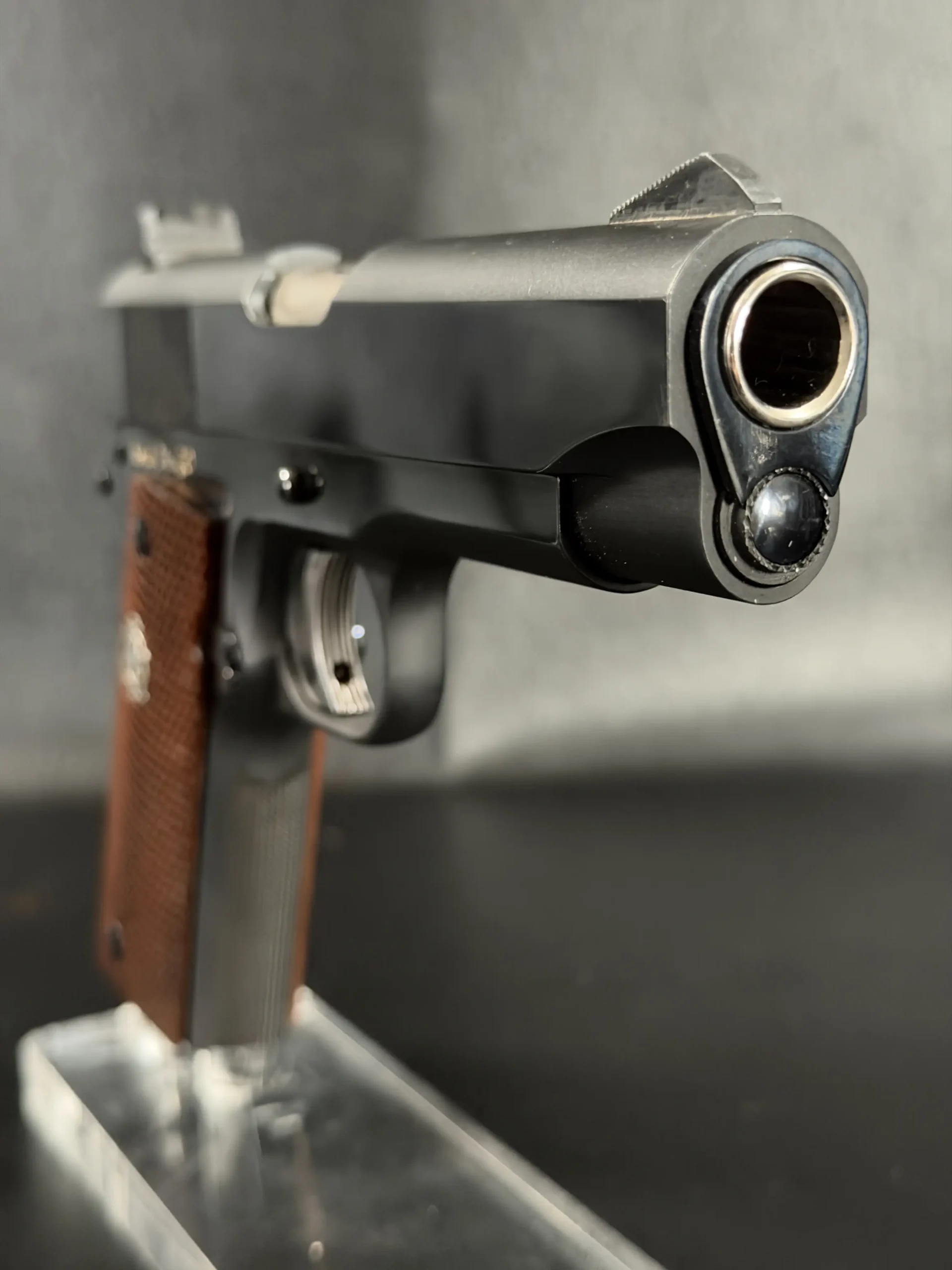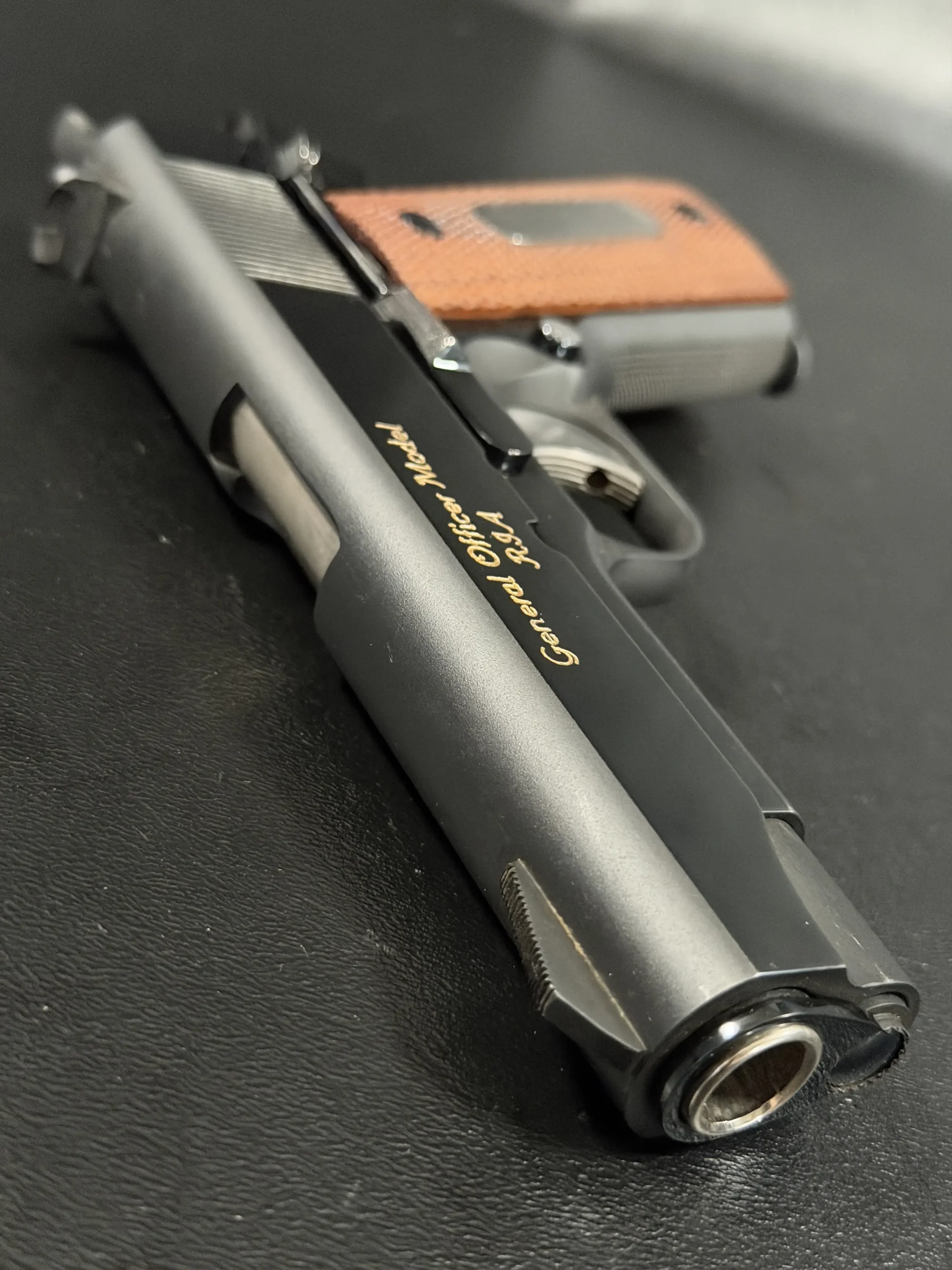 In hand, the pistol feels exactly like what it is: a military 1911 refined for rank. Balanced. Purposeful. Direct.