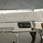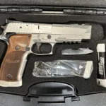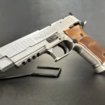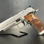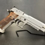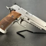 A rare glimpse into SIG Sauer’s vision of precision and prestige, this Prototype P226 X-Five SAO Silber was crafted by the Mastershop as a concept piece for the Signature line. Displayed at the prestigious IWA trade fair, this full-size single-action-only pistol blends competition-grade engineering with striking presentation. Its polished stainless steel finish, finely checkered front strap, and extended beavertail speak to both form and function, while the elegant wood grips, adorned with the SIG Sauer logo, provide a timeless aesthetic and sure handling.