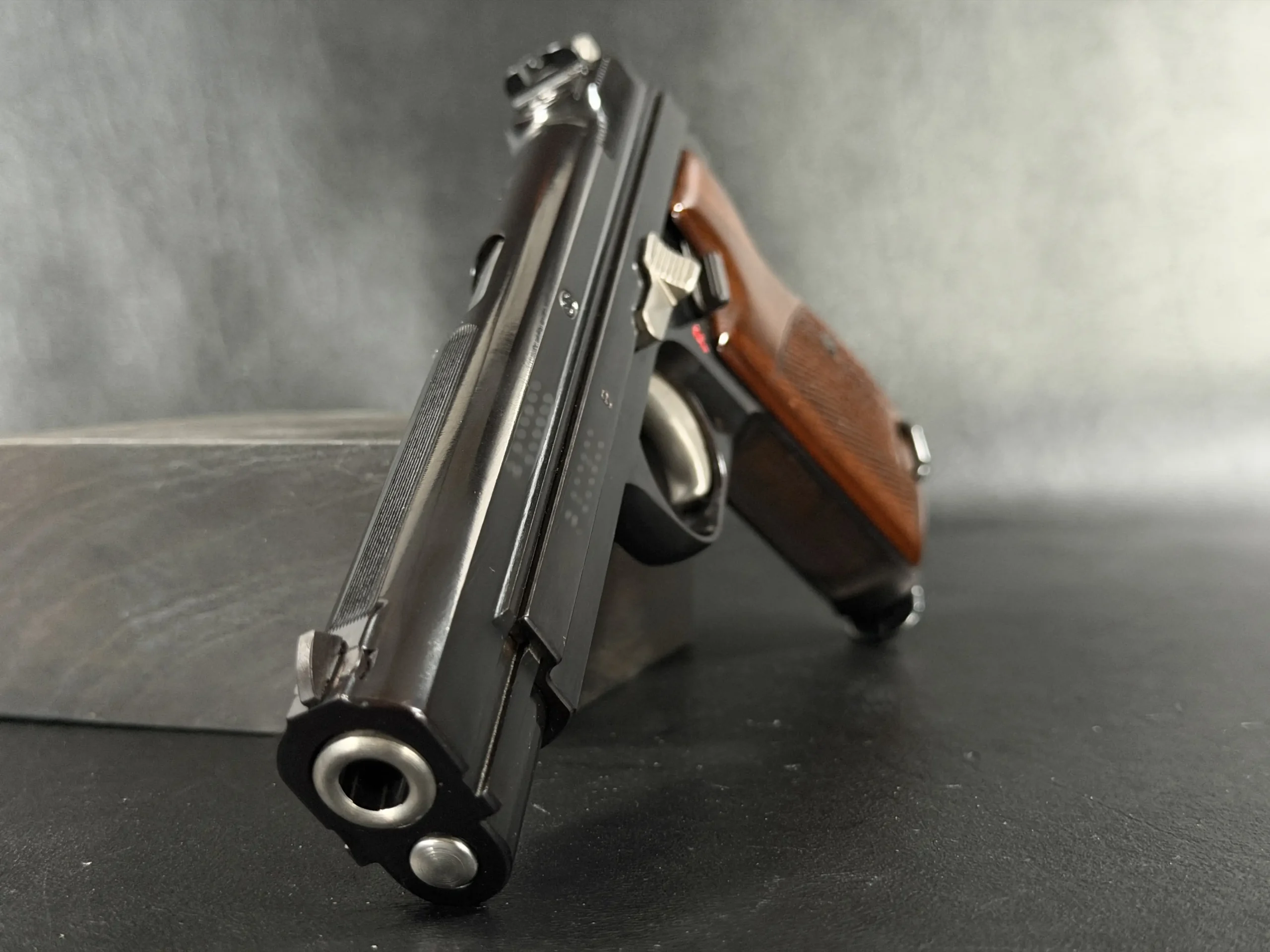 This example showcases the understated elegance that has made the P210 a collector’s favorite. The deep, rich bluing reflects the meticulous finishing standards of SIG Sauer’s German and Swiss production heritage, while the finely checkered walnut grips provide both warmth and control. Subtle details, from the polished controls to the precise machining throughout, speak to a time when craftsmanship was paramount, and shortcuts simply weren’t tolerated.
