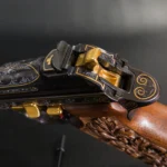 Gold runs through this pistol like a quiet heartbeat. The Swiss coat of arms gleams on the left side, framed in straight gold inlay that ties back to its proud roots. The trigger, safety lever, bolt holder, and hammer are finished in 18-karat gold, not to show off, but to whisper luxury to those who know what they’re looking at.