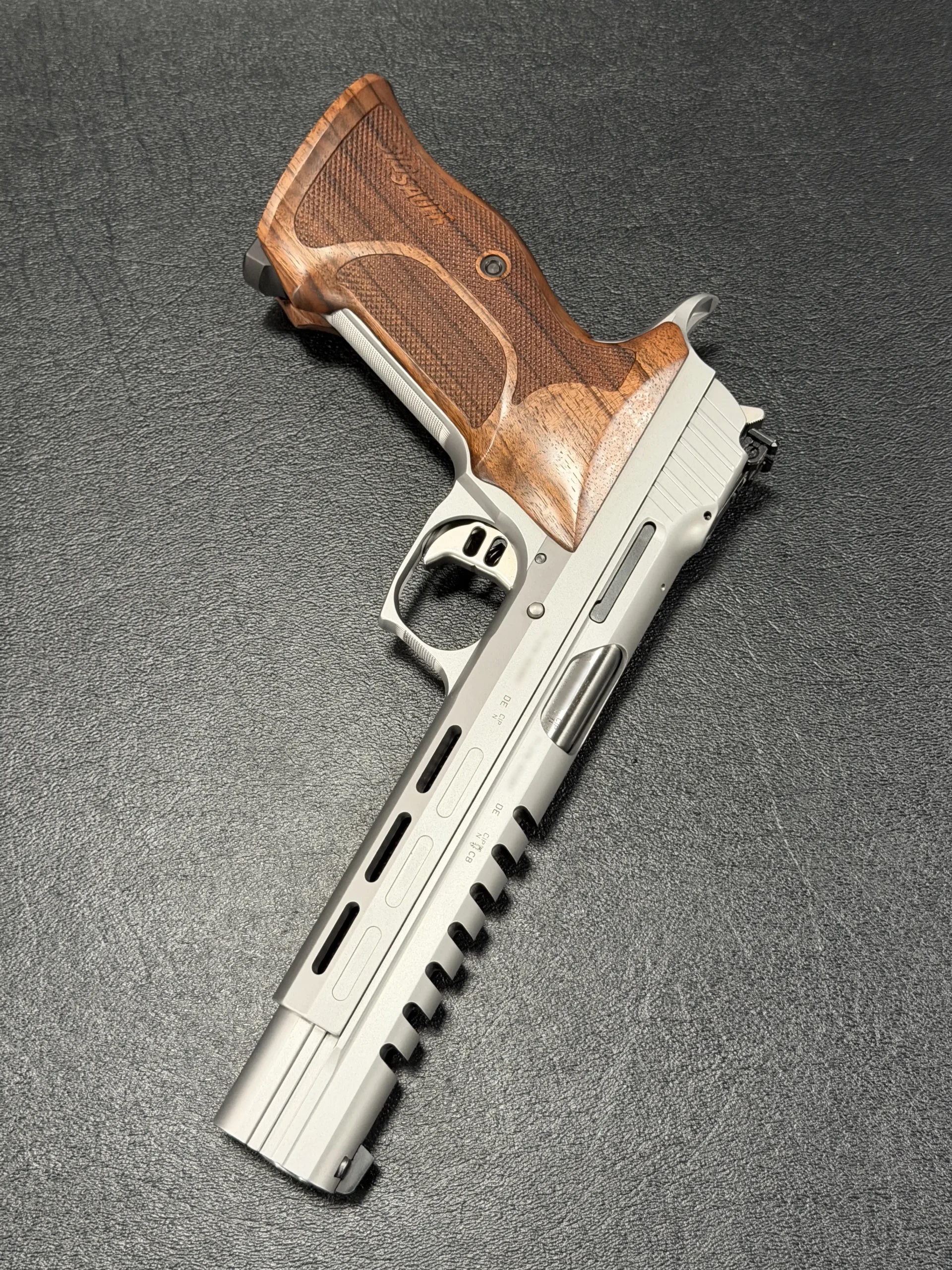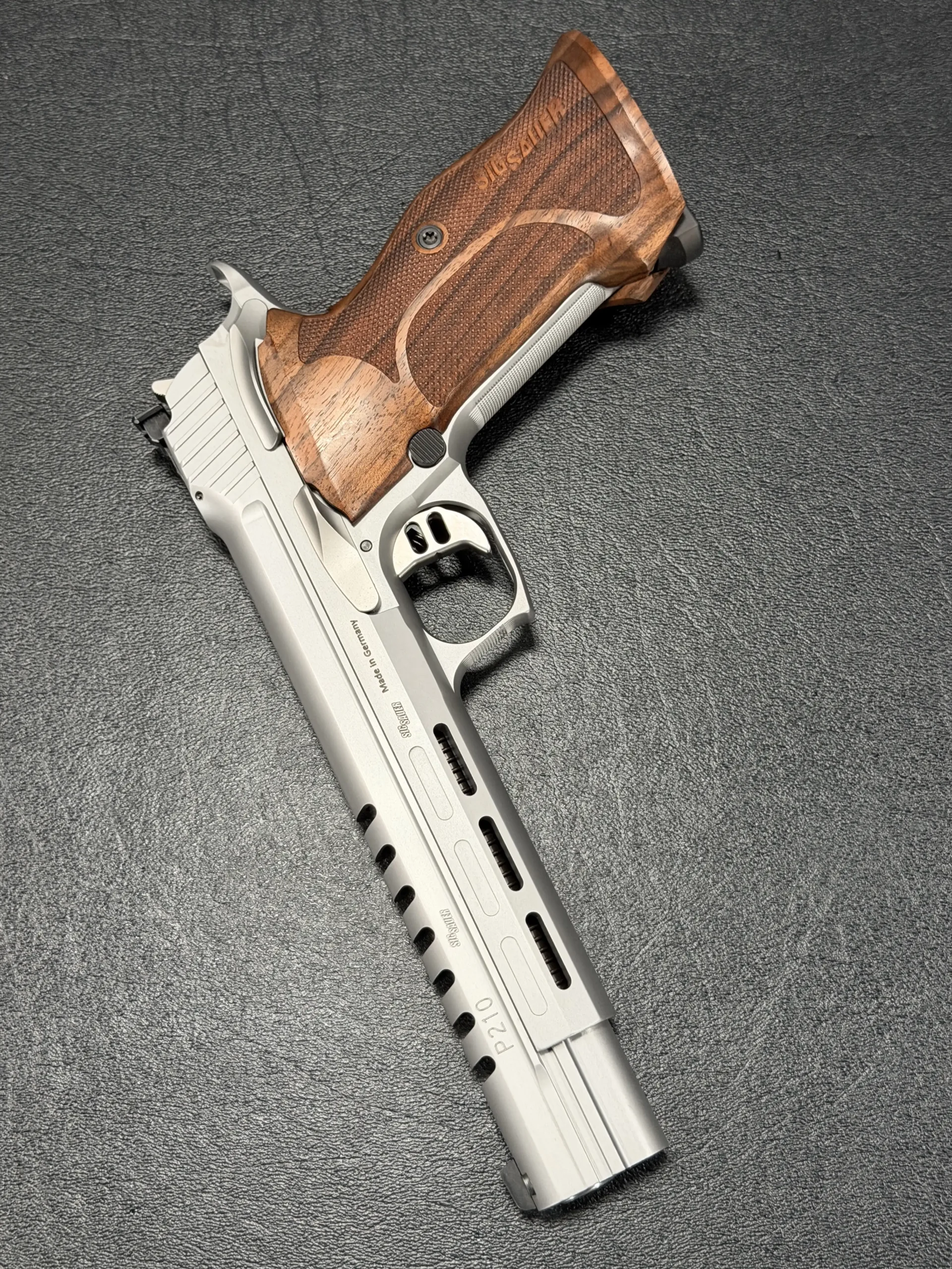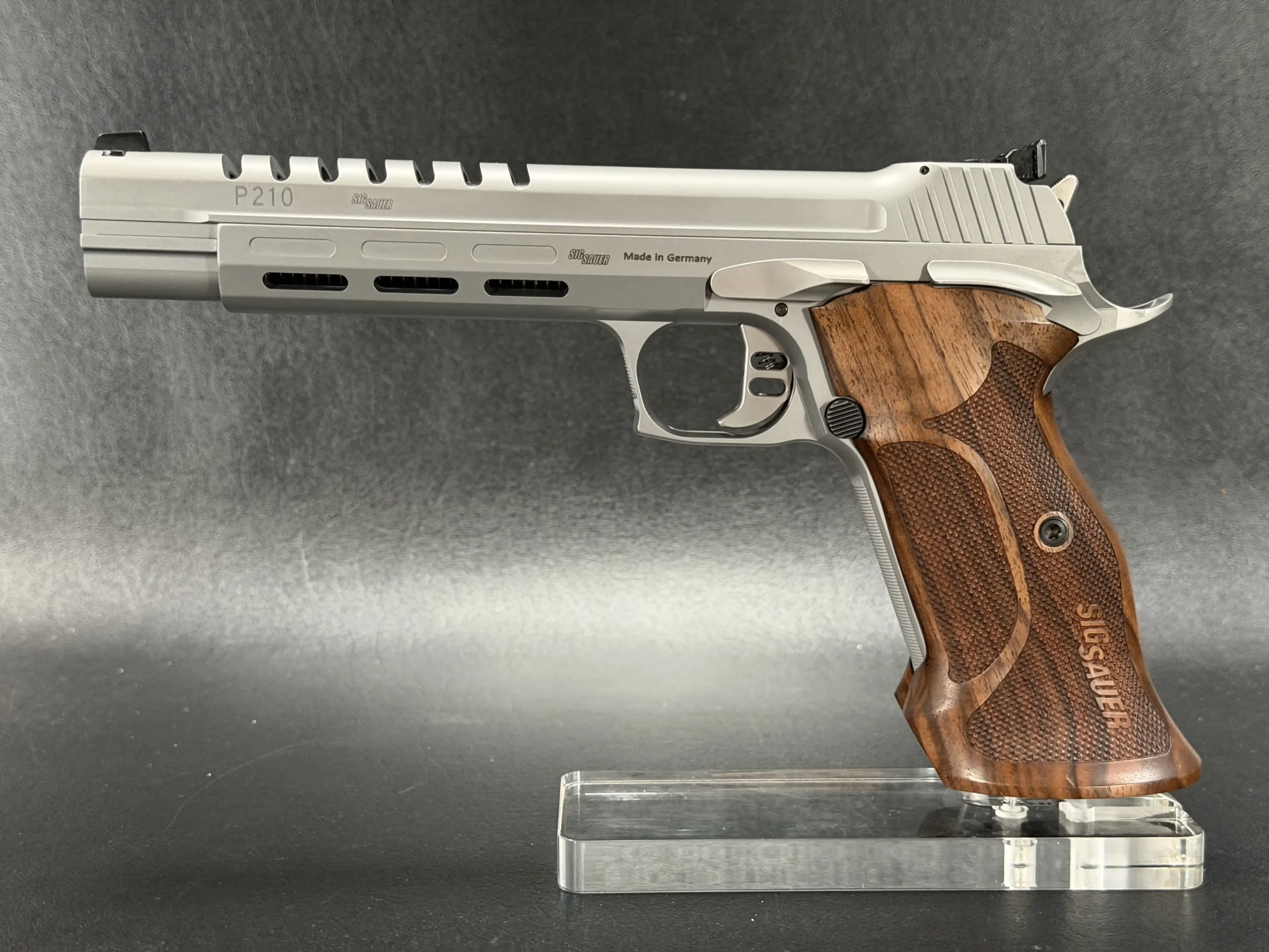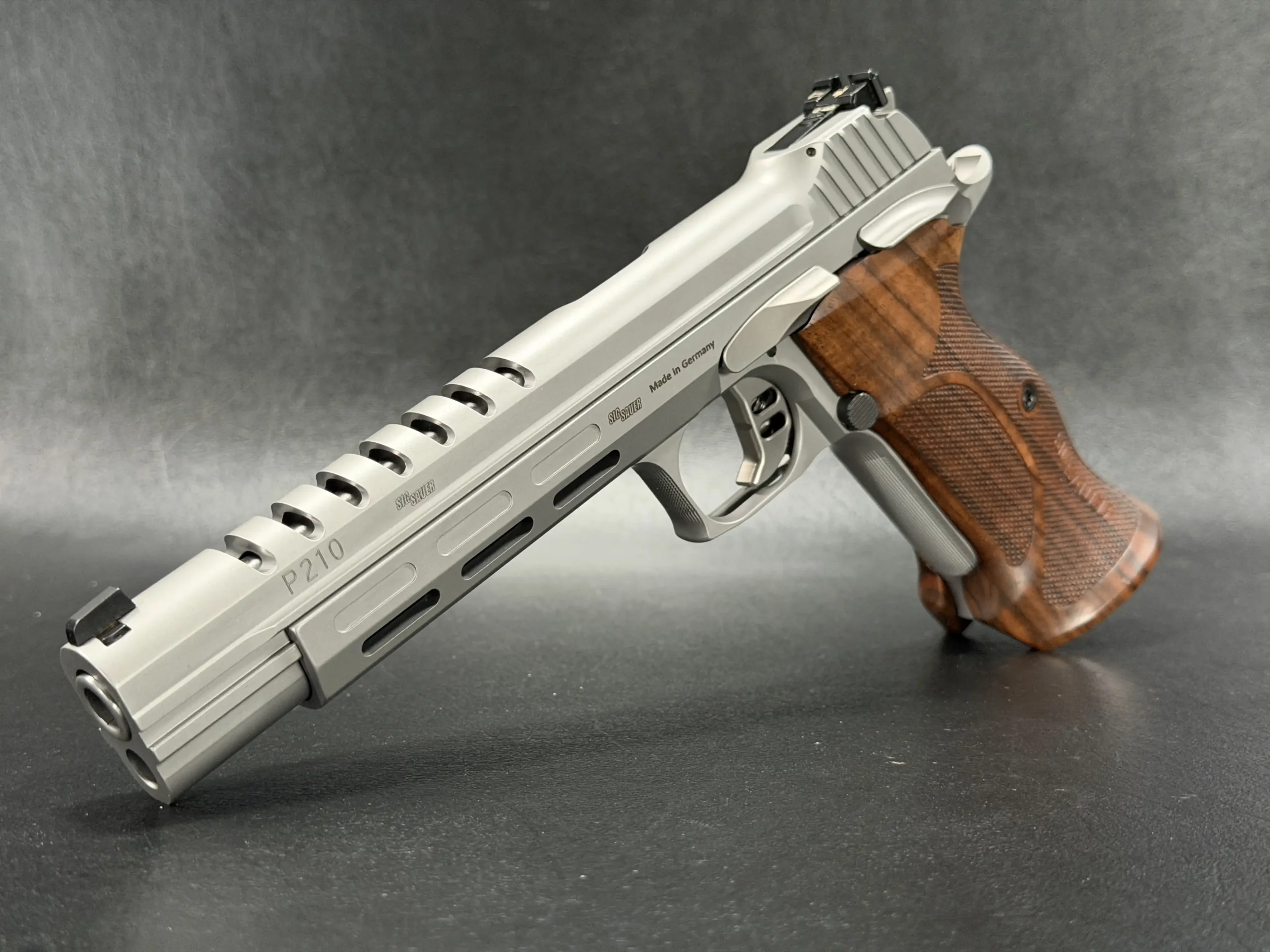 The SIG Sauer P210 Skeleton is a striking fusion of Swiss-German precision and modern competition-inspired design. Built on the legendary P210 platform, long regarded as one of the most accurate service pistols ever produced, this Skeleton variant elevates the classic with sculpted lightning cuts, contemporary ergonomics, and unmistakable visual presence.