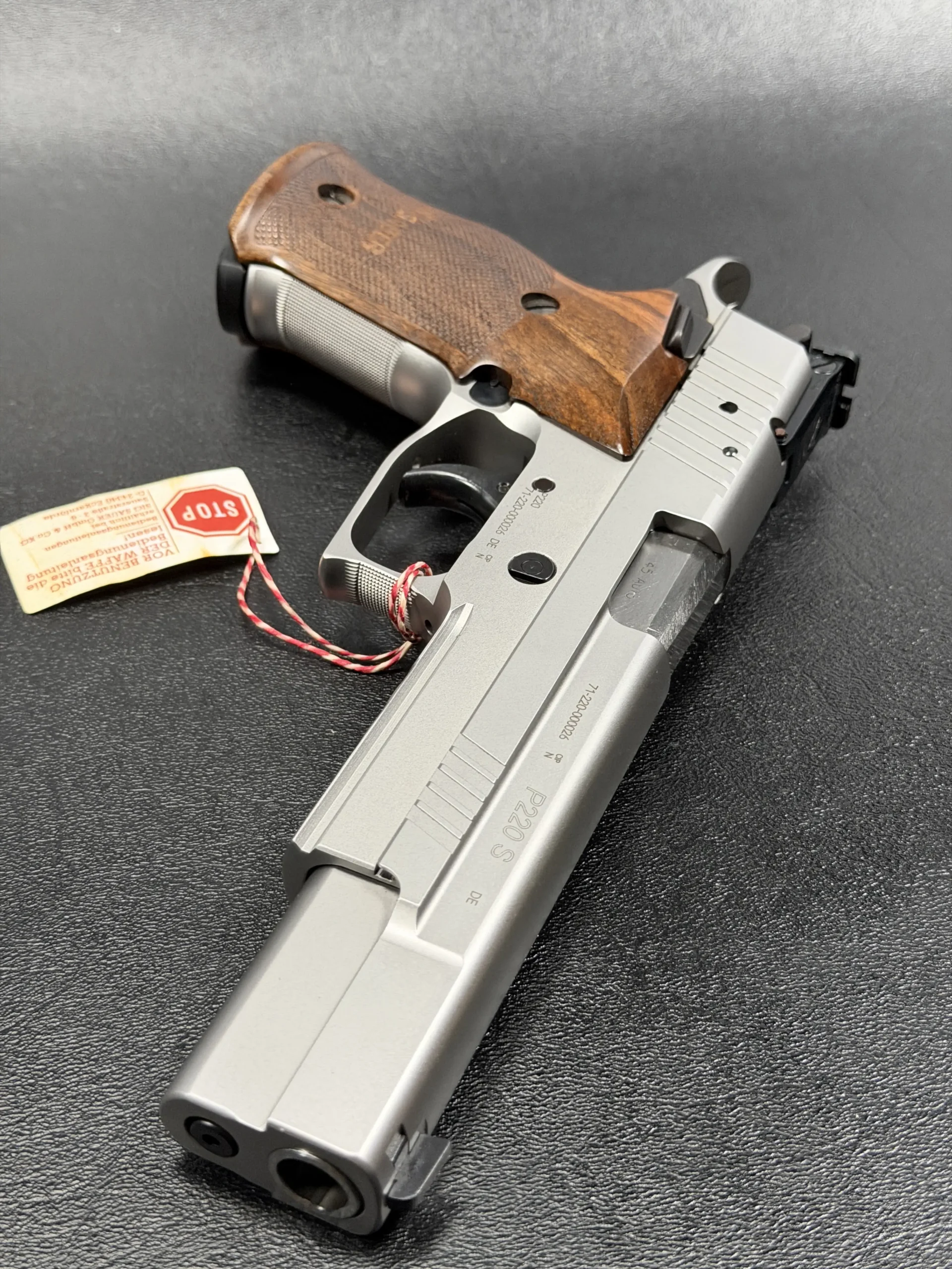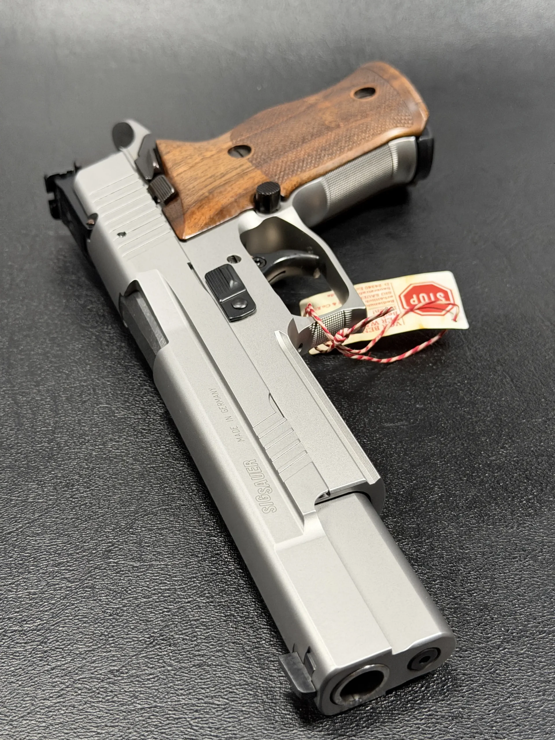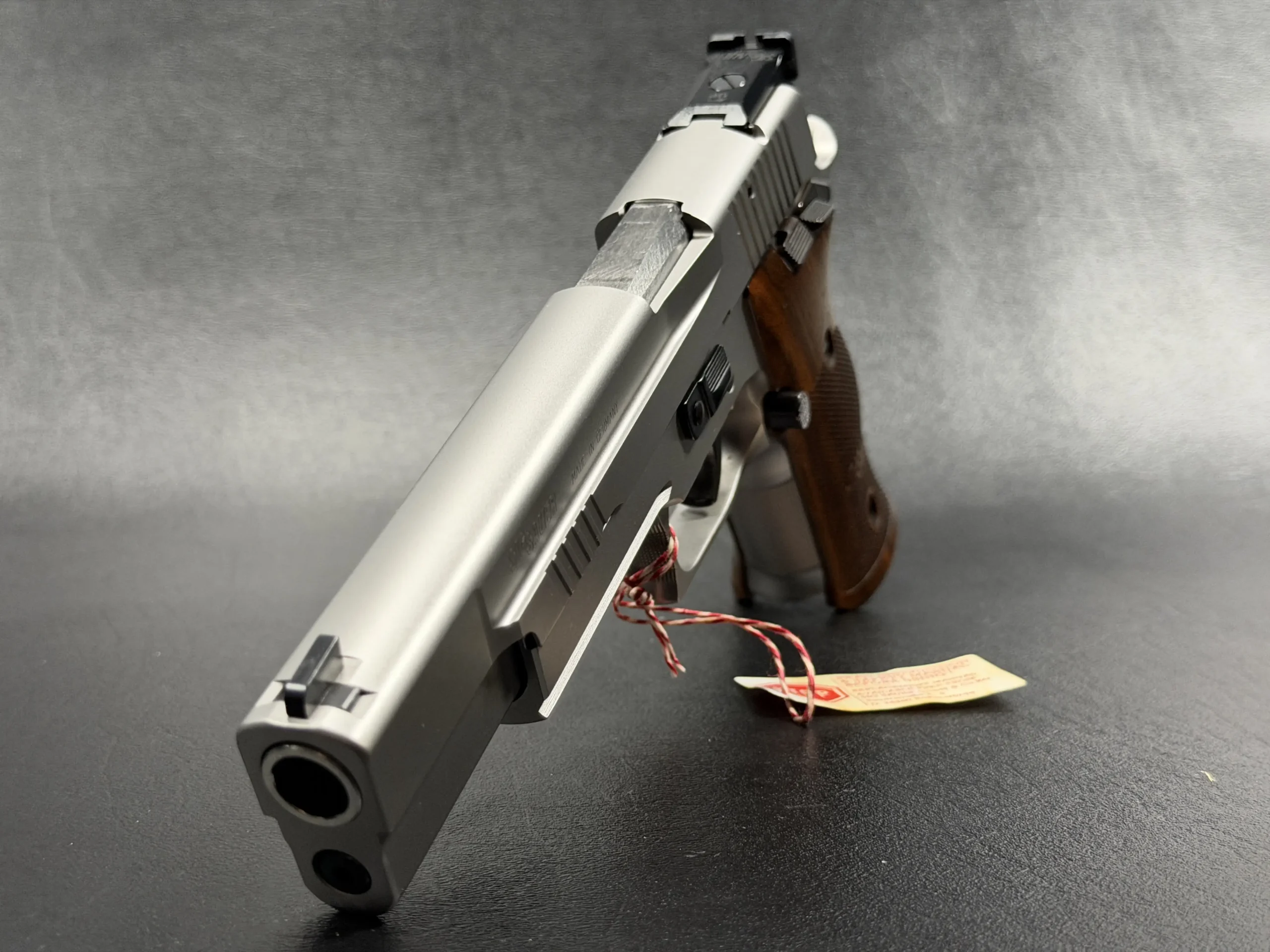 Chambered in .45 ACP, this German-made X-Six represents SIG Sauer at its most deliberate. The long, heavy slide and extended barrel give the pistol a planted, almost architectural presence, while the silver finish highlights the precise machining lines that define the X-Series. Every surface feels intentional, clean, sharp, and refined, without losing the purposeful seriousness that defines the P220 lineage.