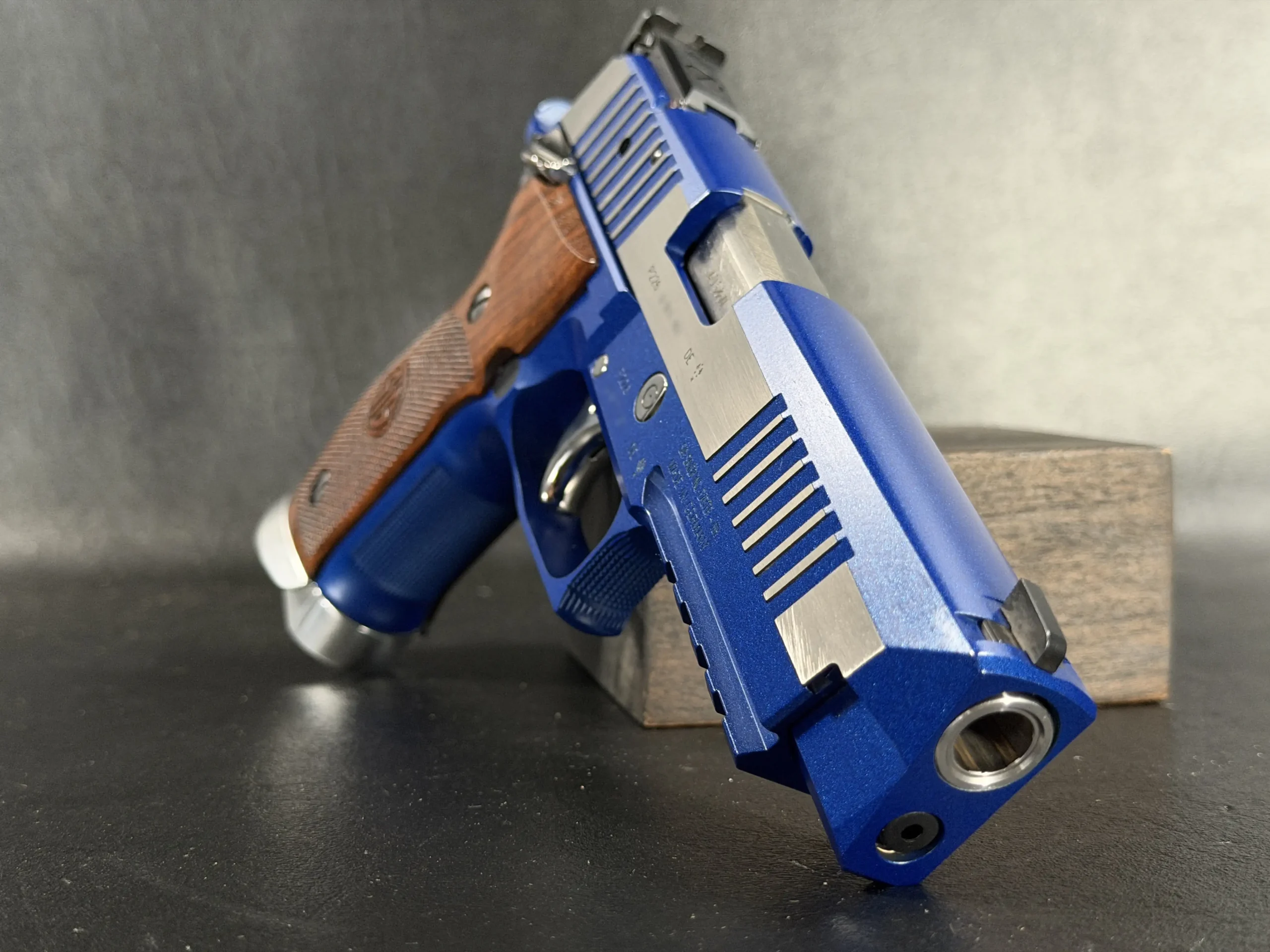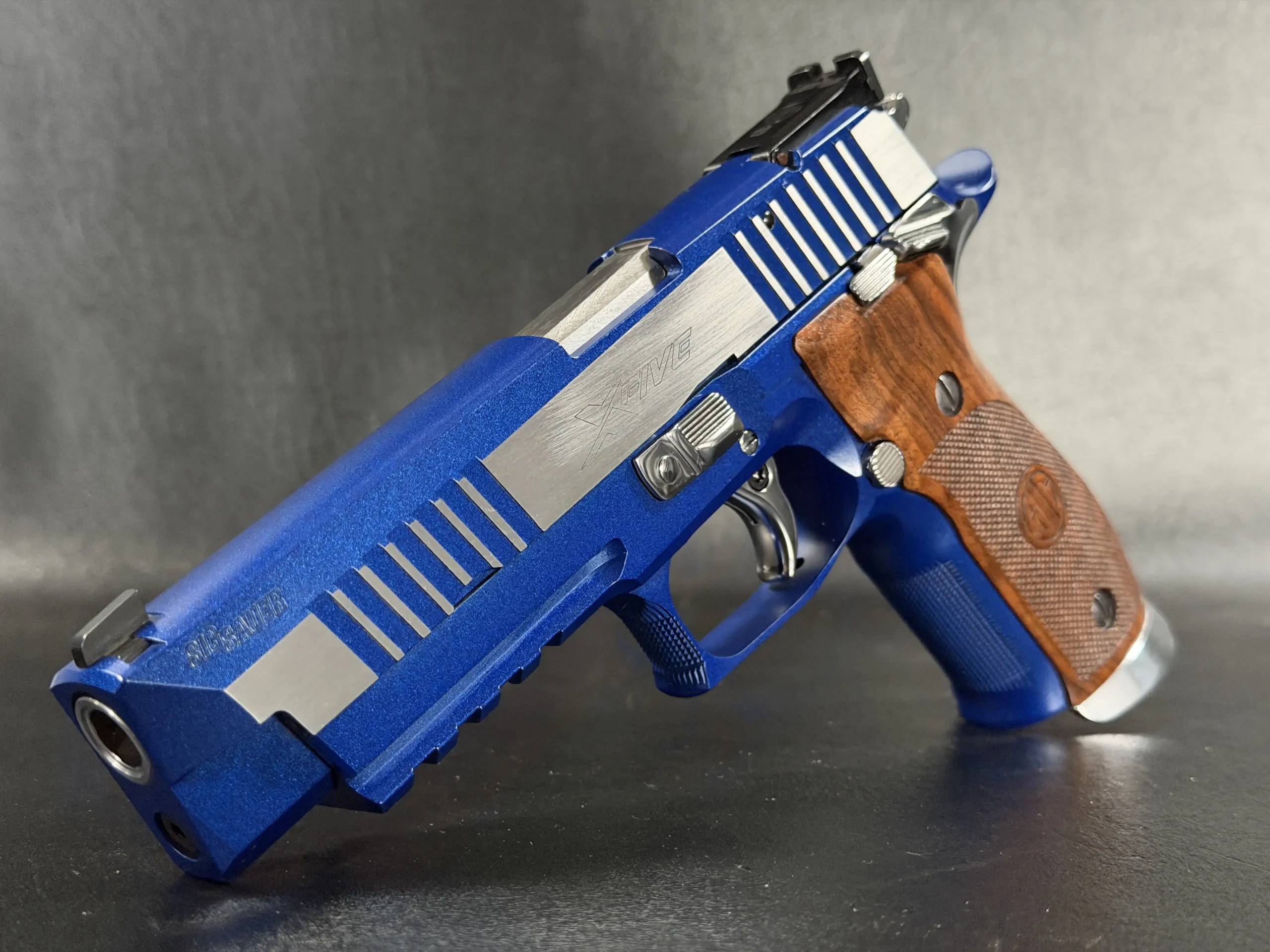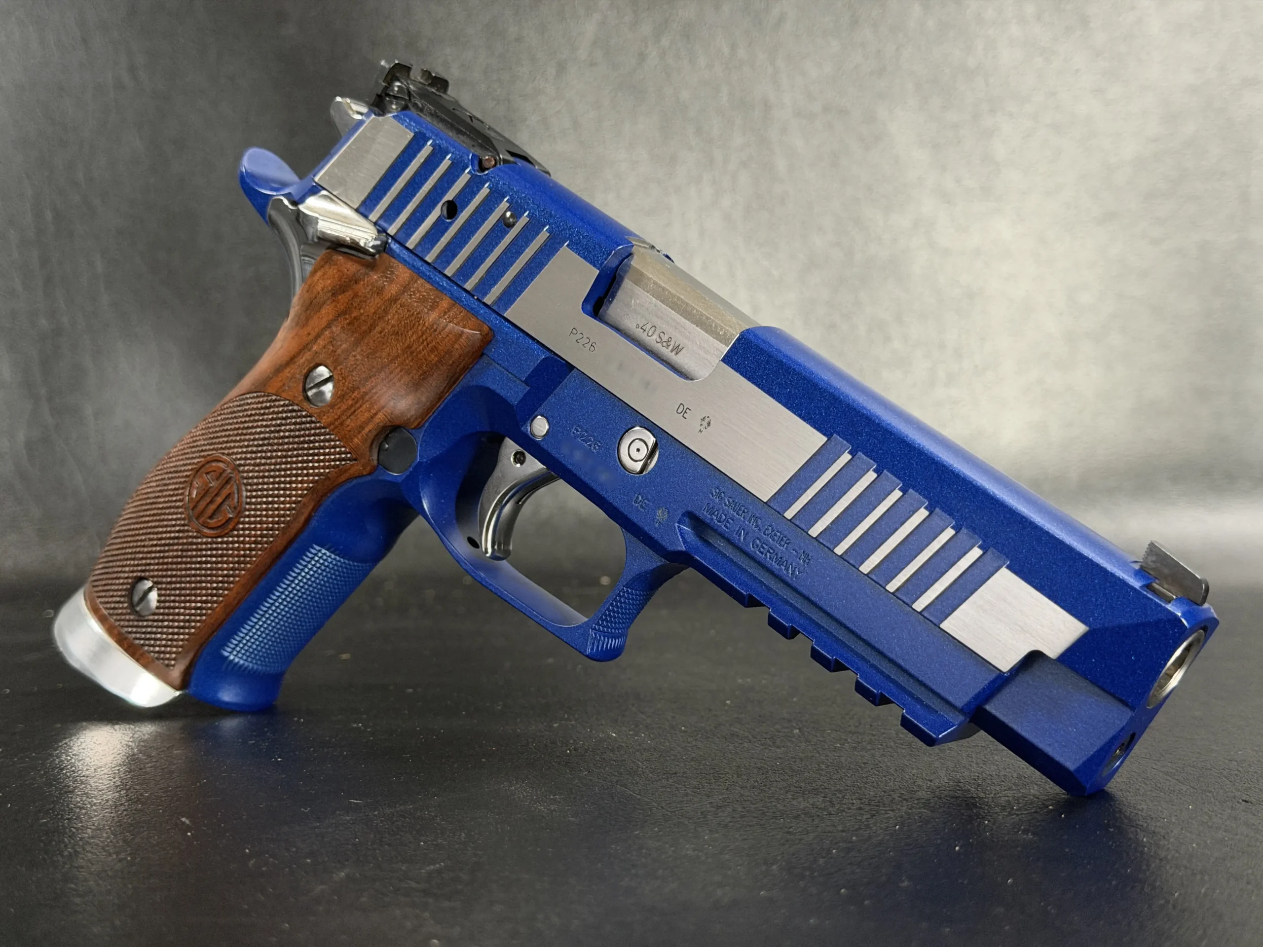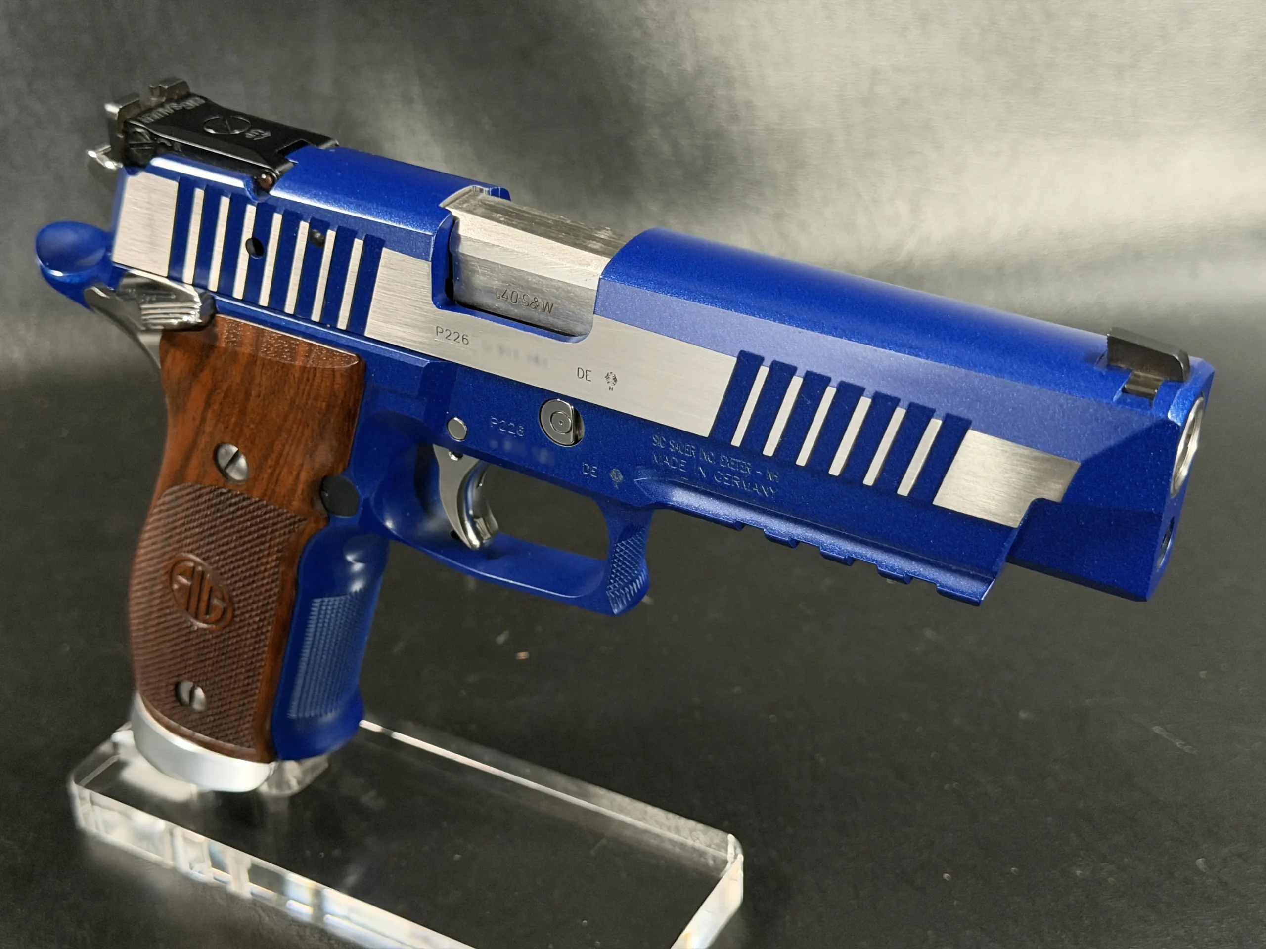 It introduces the SIG Sauer P226 X-5 Blue Moon GEN-2, a true masterpiece from the renowned SIG Sauer Mastershop. This pistol delivers exceptional performance and showcases a perfect balance with its striking blue finish and stainless steel accents. The harmony between performance and aesthetics is hard to overlook and even harder not to admire.