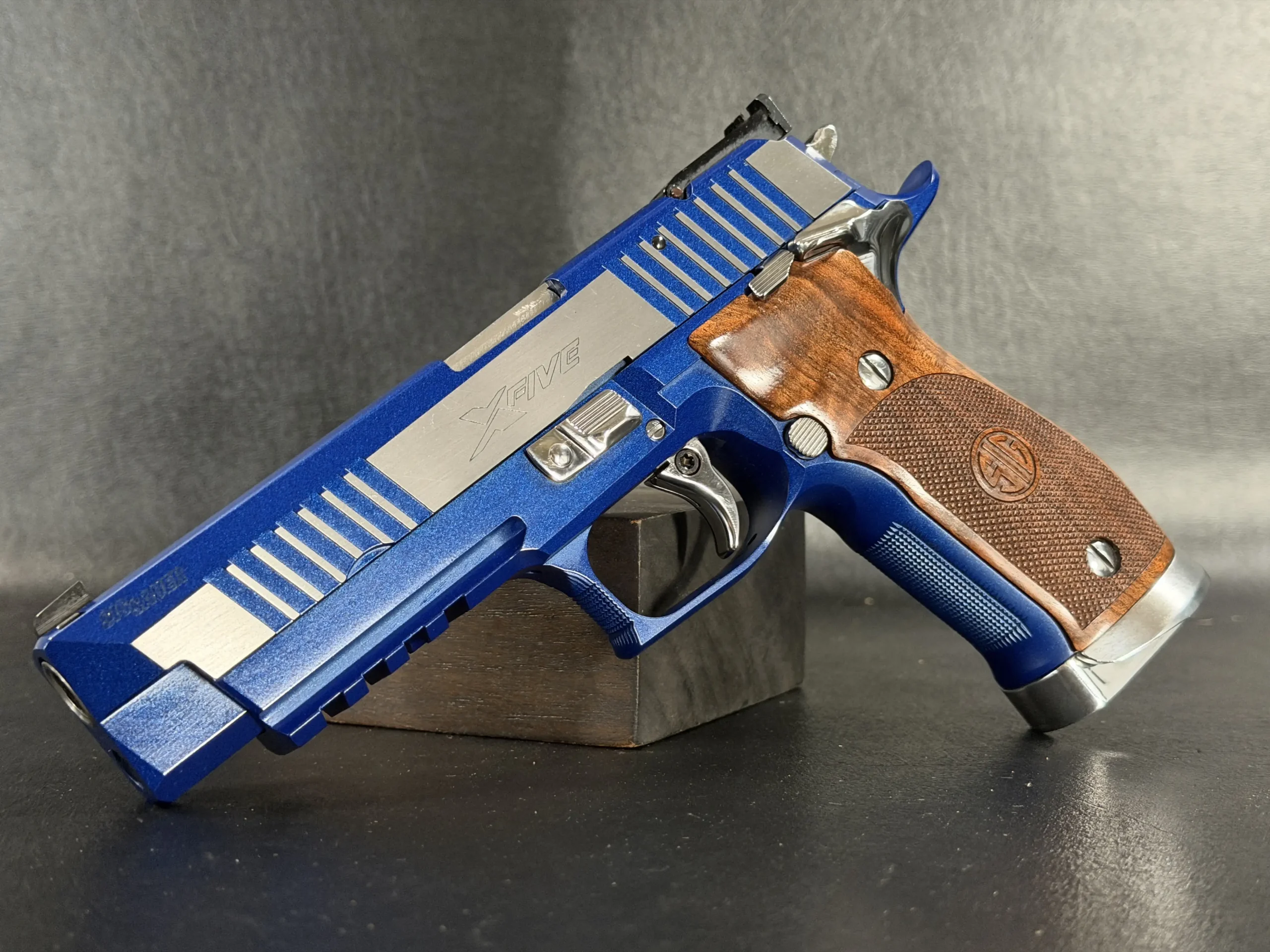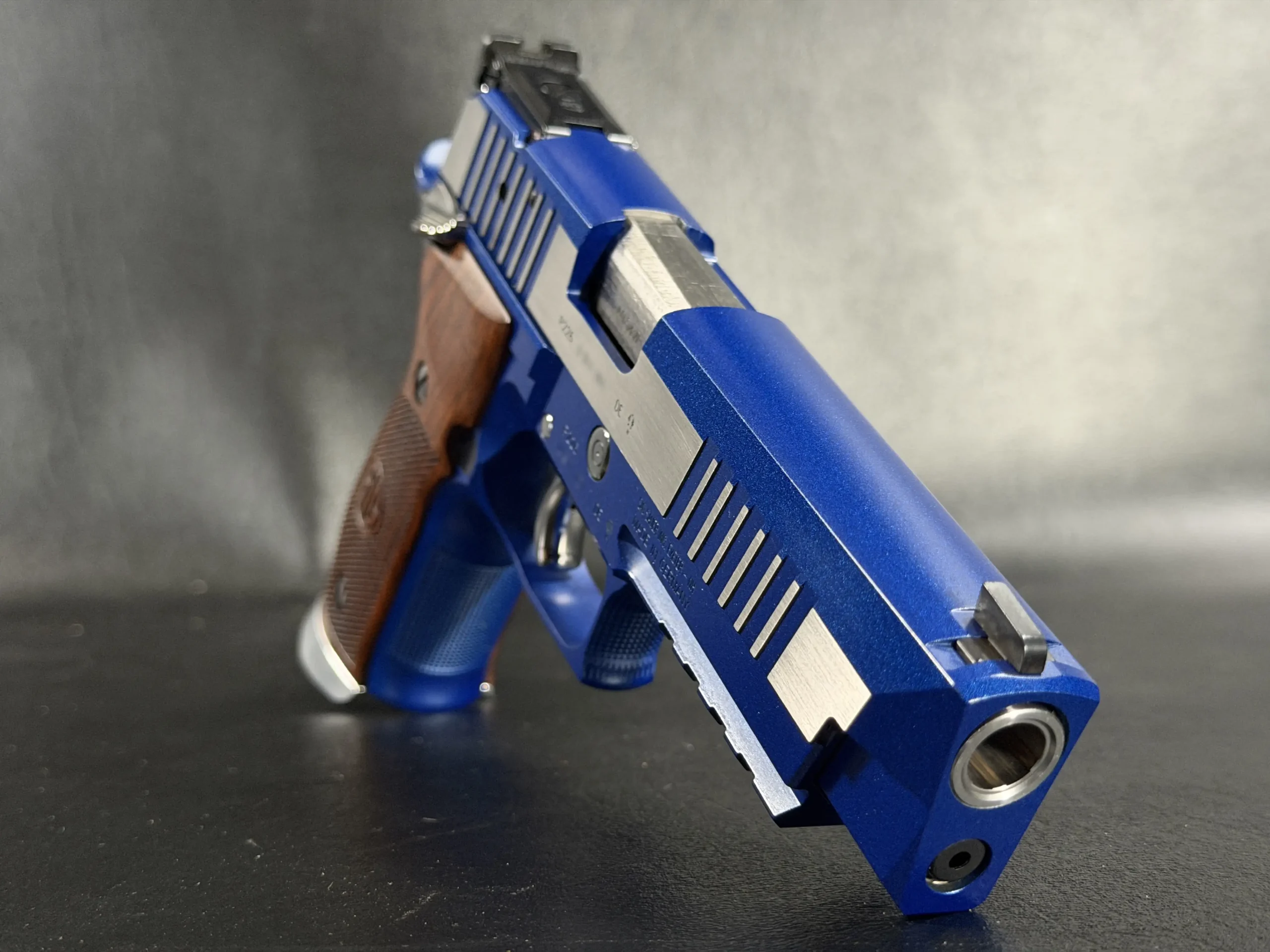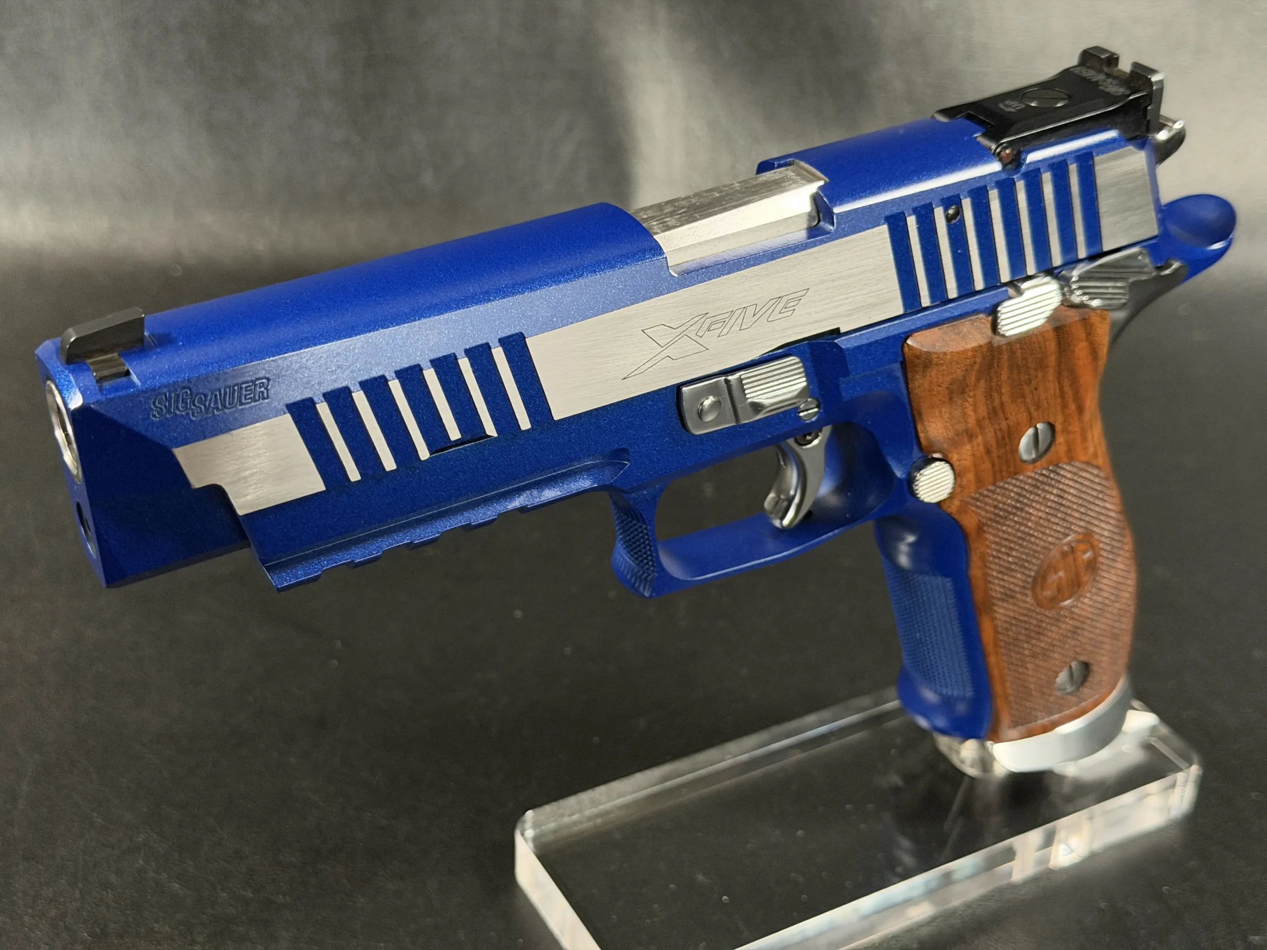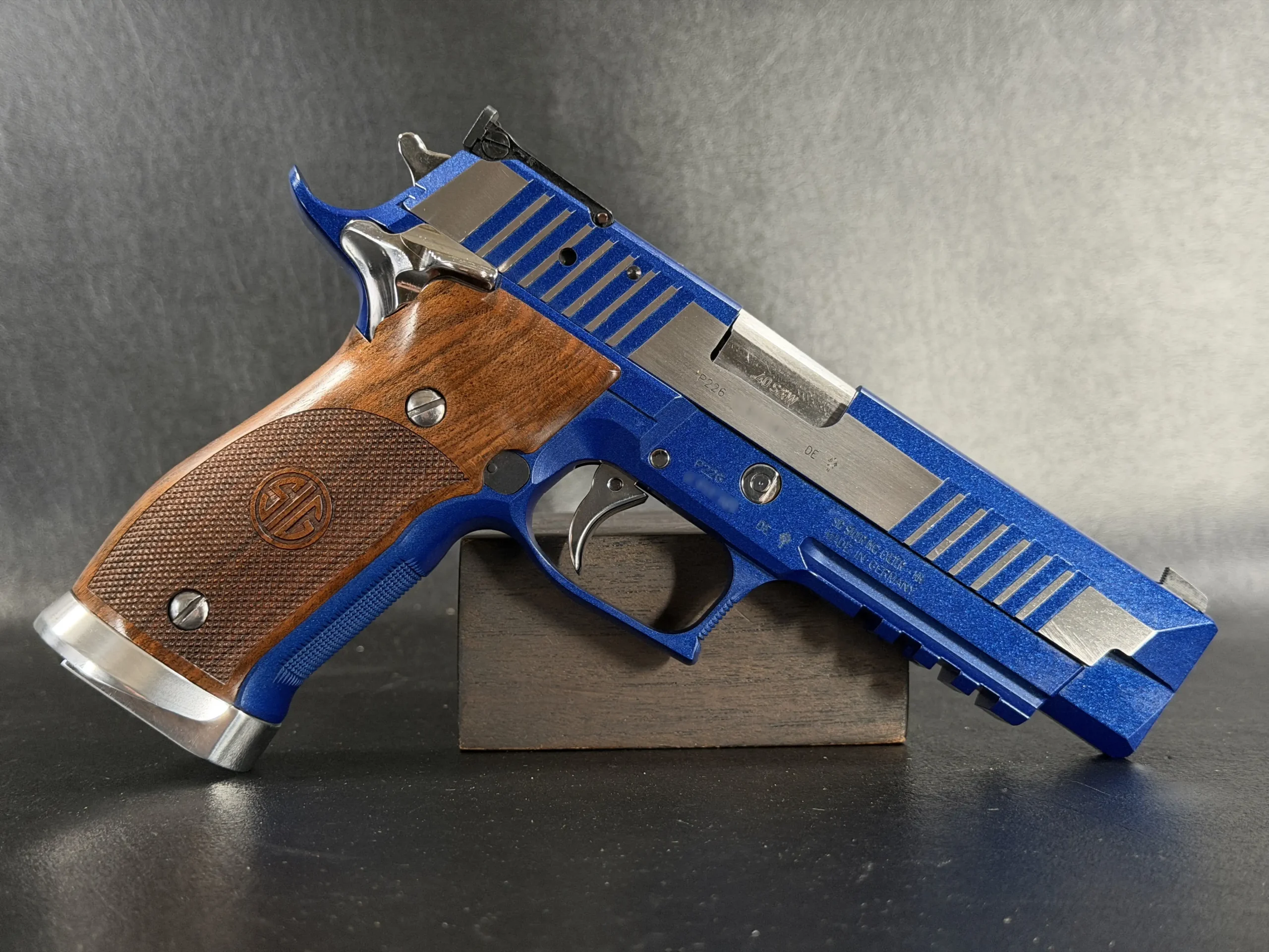 It introduces the SIG Sauer P226 X-5 Blue Moon GEN-2, a true masterpiece from the renowned SIG Sauer Mastershop. This pistol delivers exceptional performance and showcases a perfect balance with its striking blue finish and stainless steel accents. The harmony between performance and aesthetics is hard to overlook and even harder not to admire.