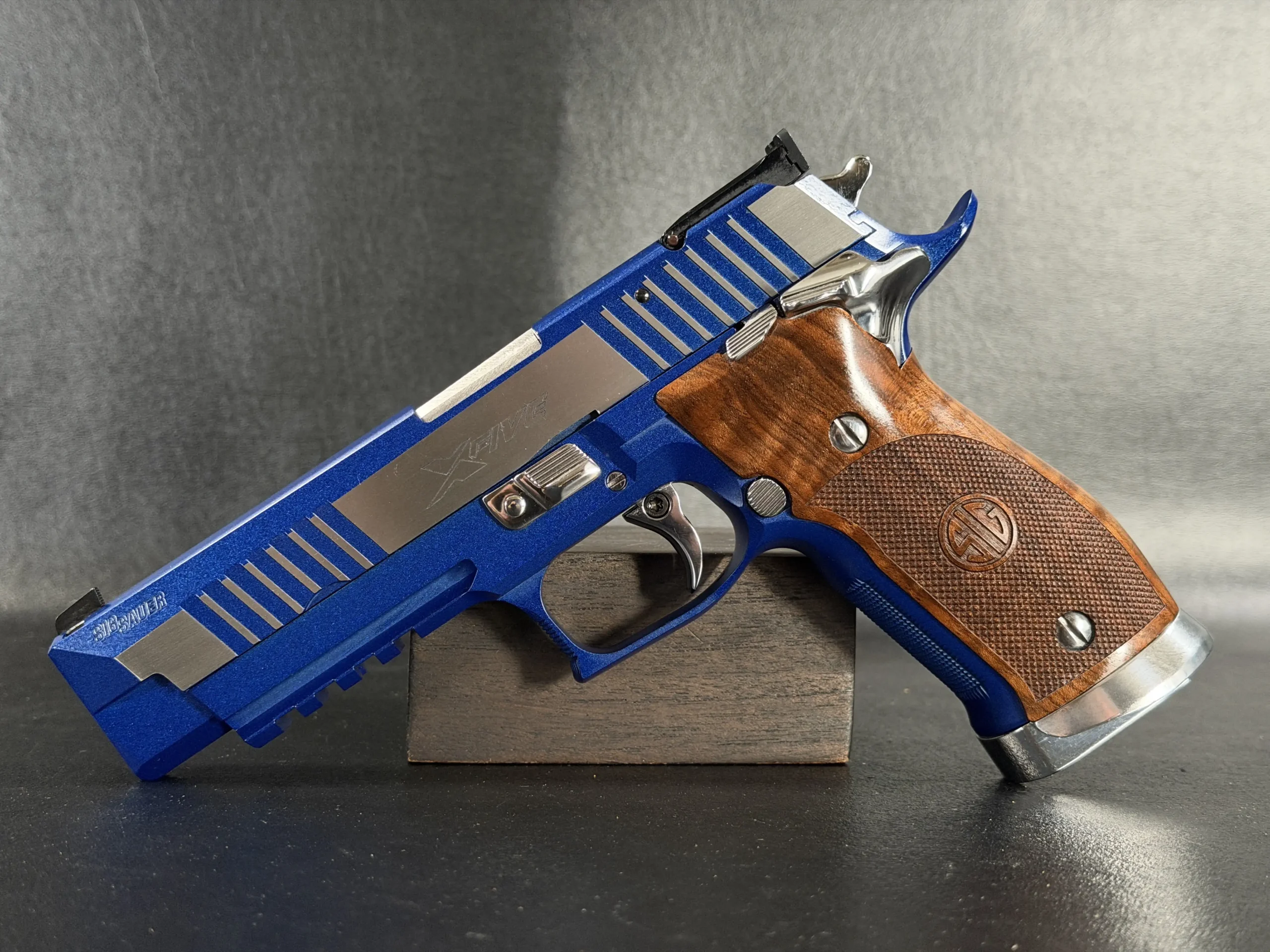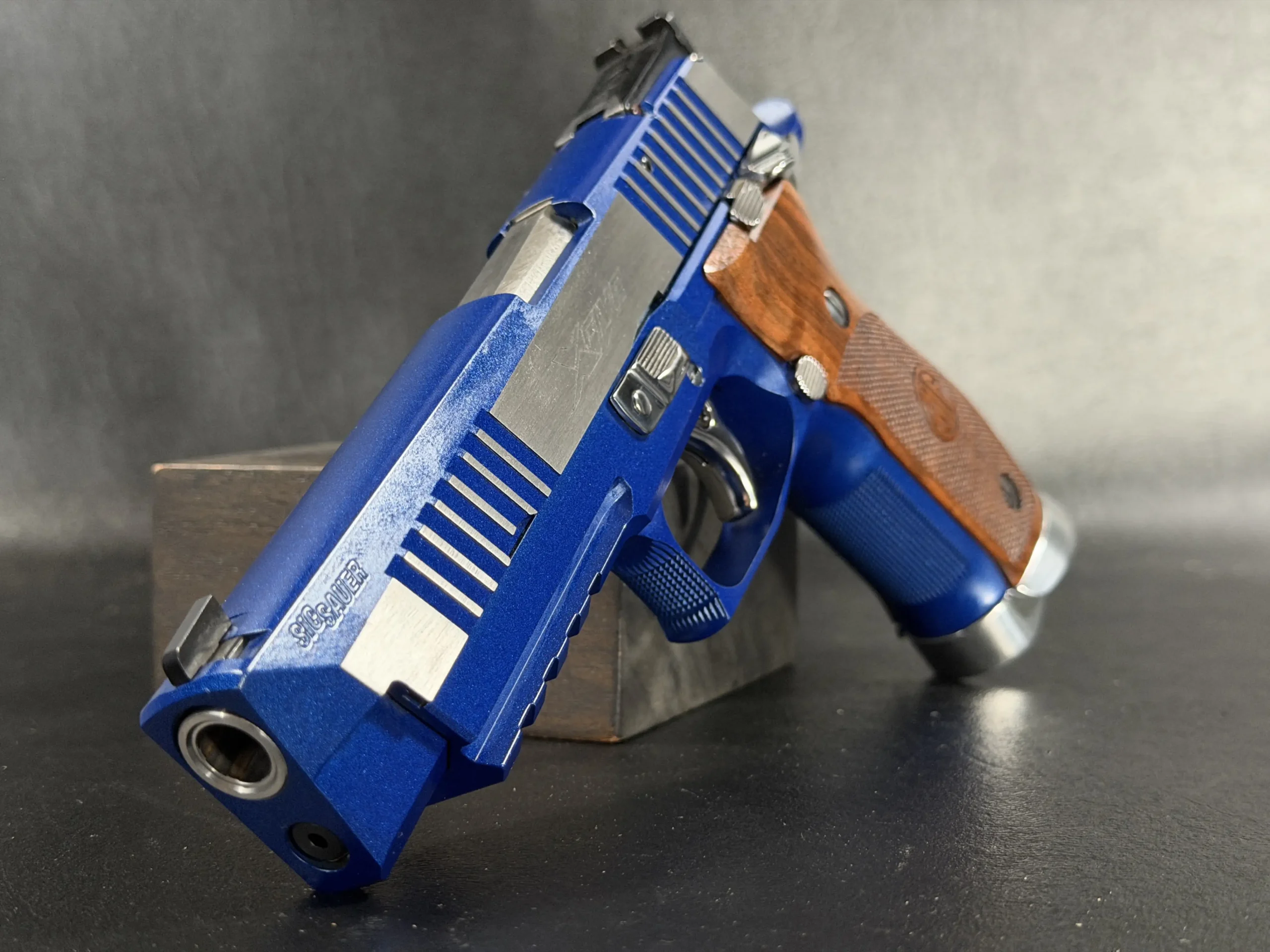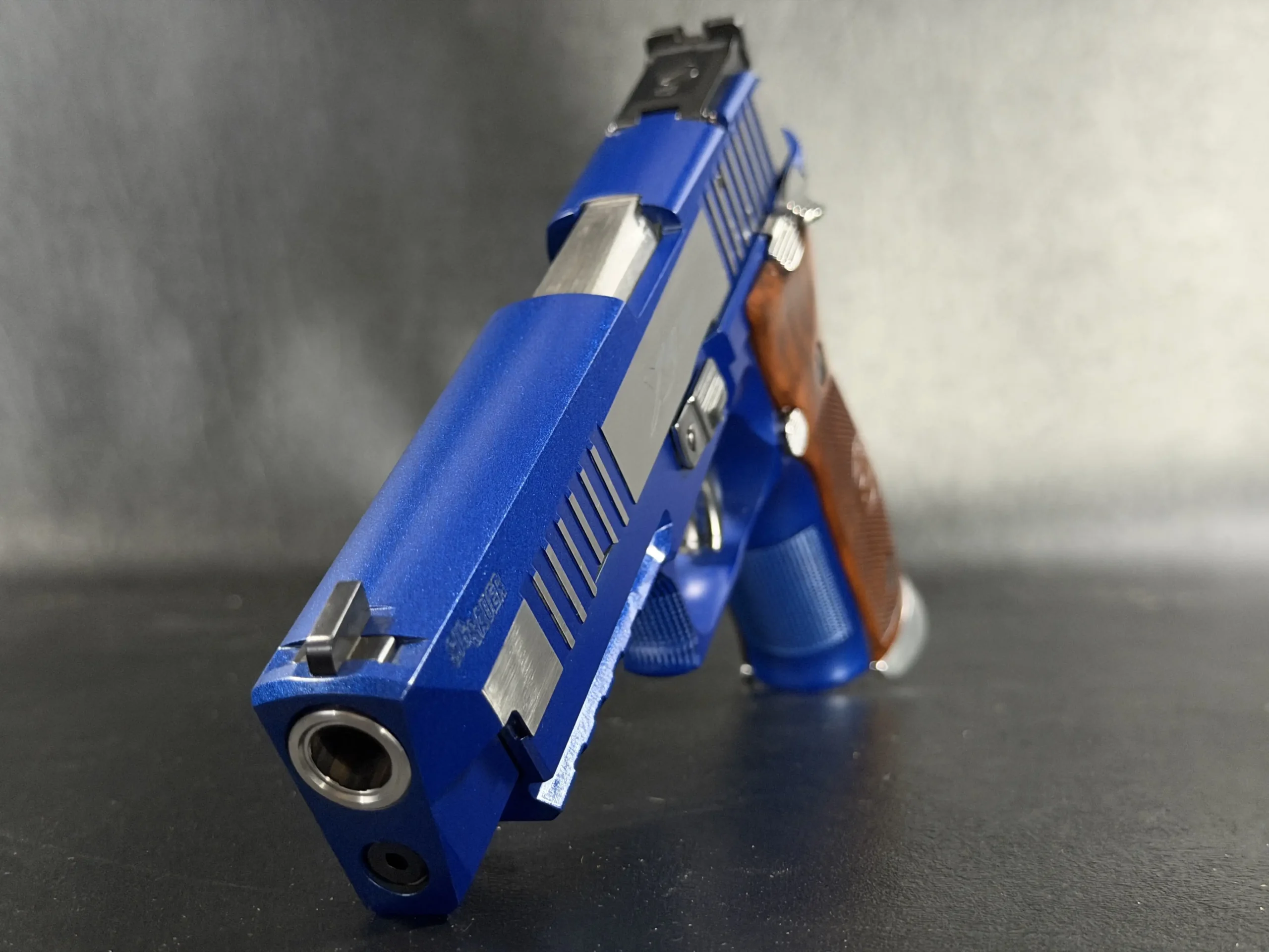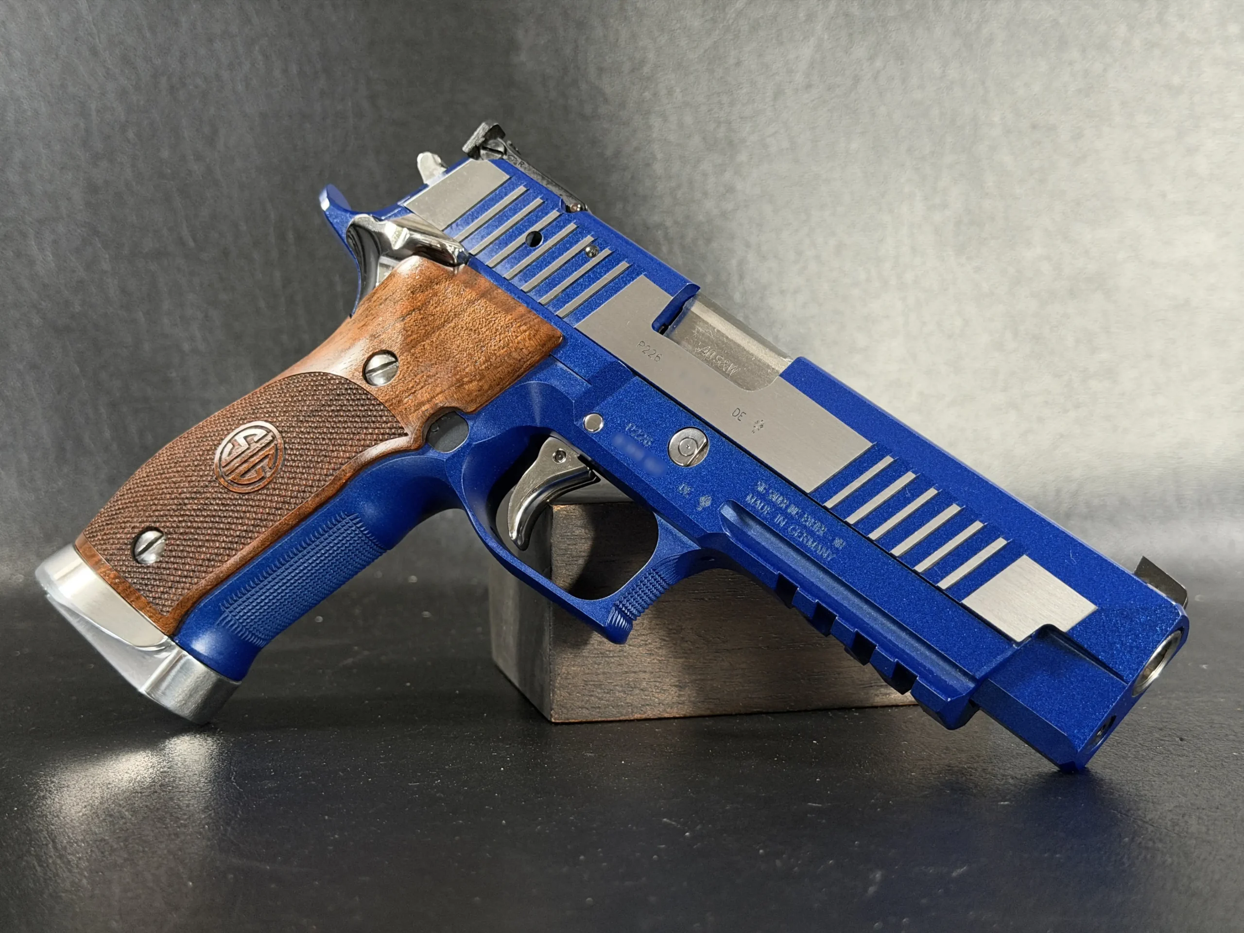 It introduces the SIG Sauer P226 X-5 Blue Moon GEN-2, a true masterpiece from the renowned SIG Sauer Mastershop. This pistol delivers exceptional performance and showcases a perfect balance with its striking blue finish and stainless steel accents. The harmony between performance and aesthetics is hard to overlook and even harder not to admire.