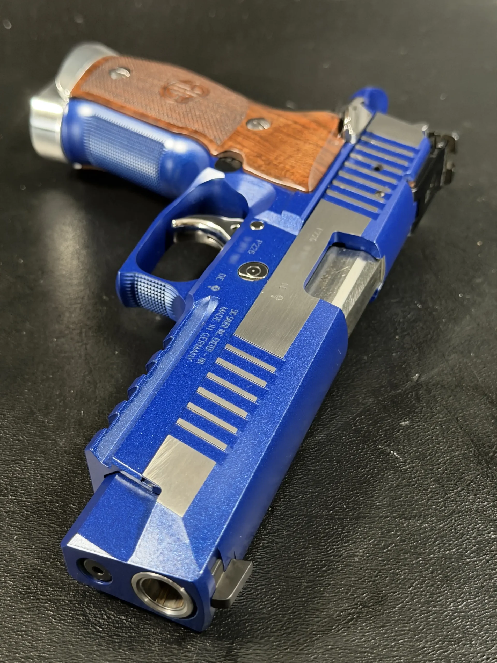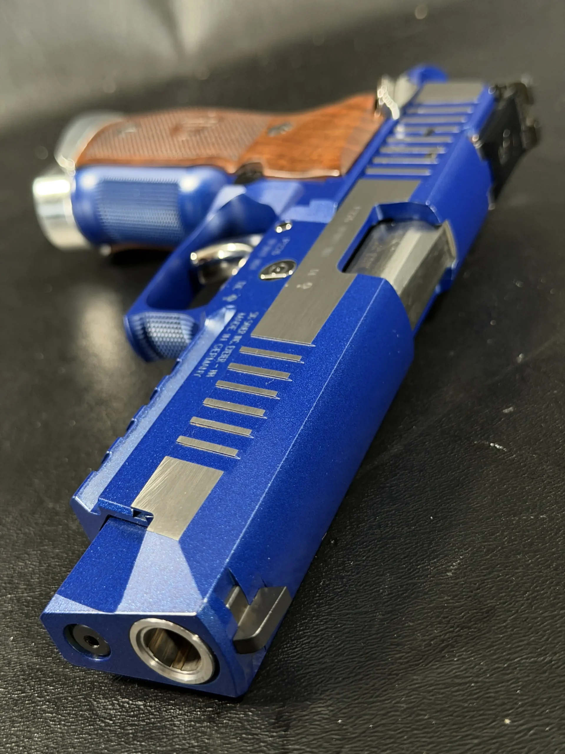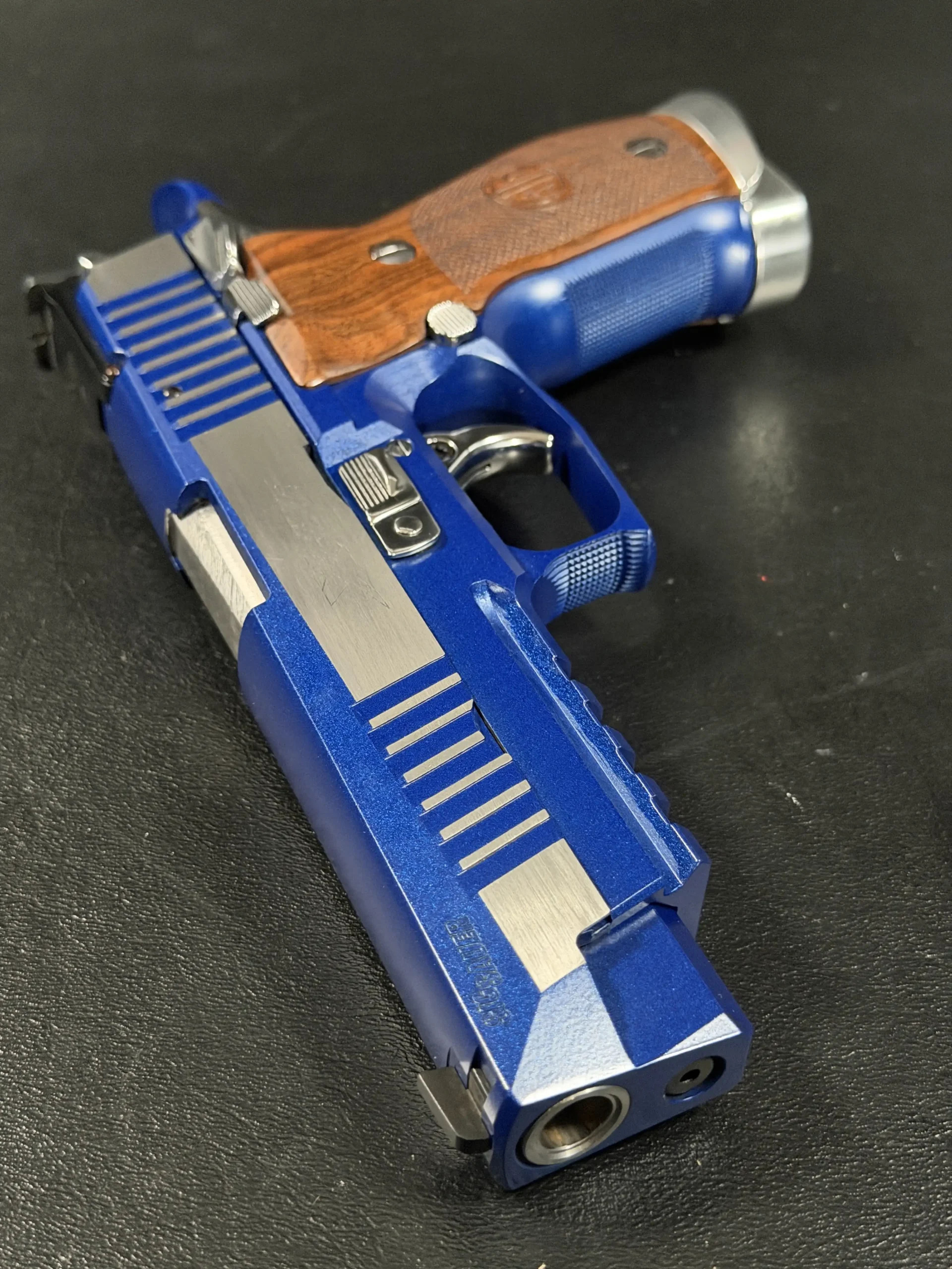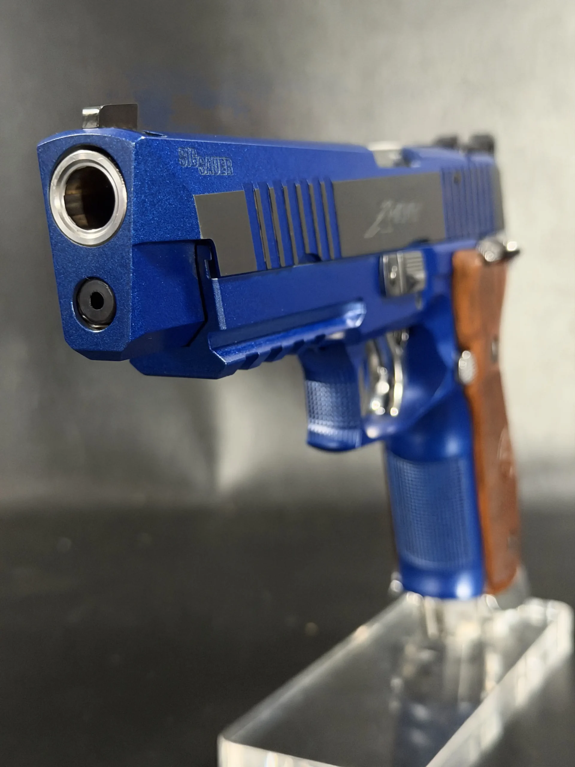 It introduces the SIG Sauer P226 X-5 Blue Moon GEN-2, a true masterpiece from the renowned SIG Sauer Mastershop. This pistol delivers exceptional performance and showcases a perfect balance with its striking blue finish and stainless steel accents. The harmony between performance and aesthetics is hard to overlook and even harder not to admire.