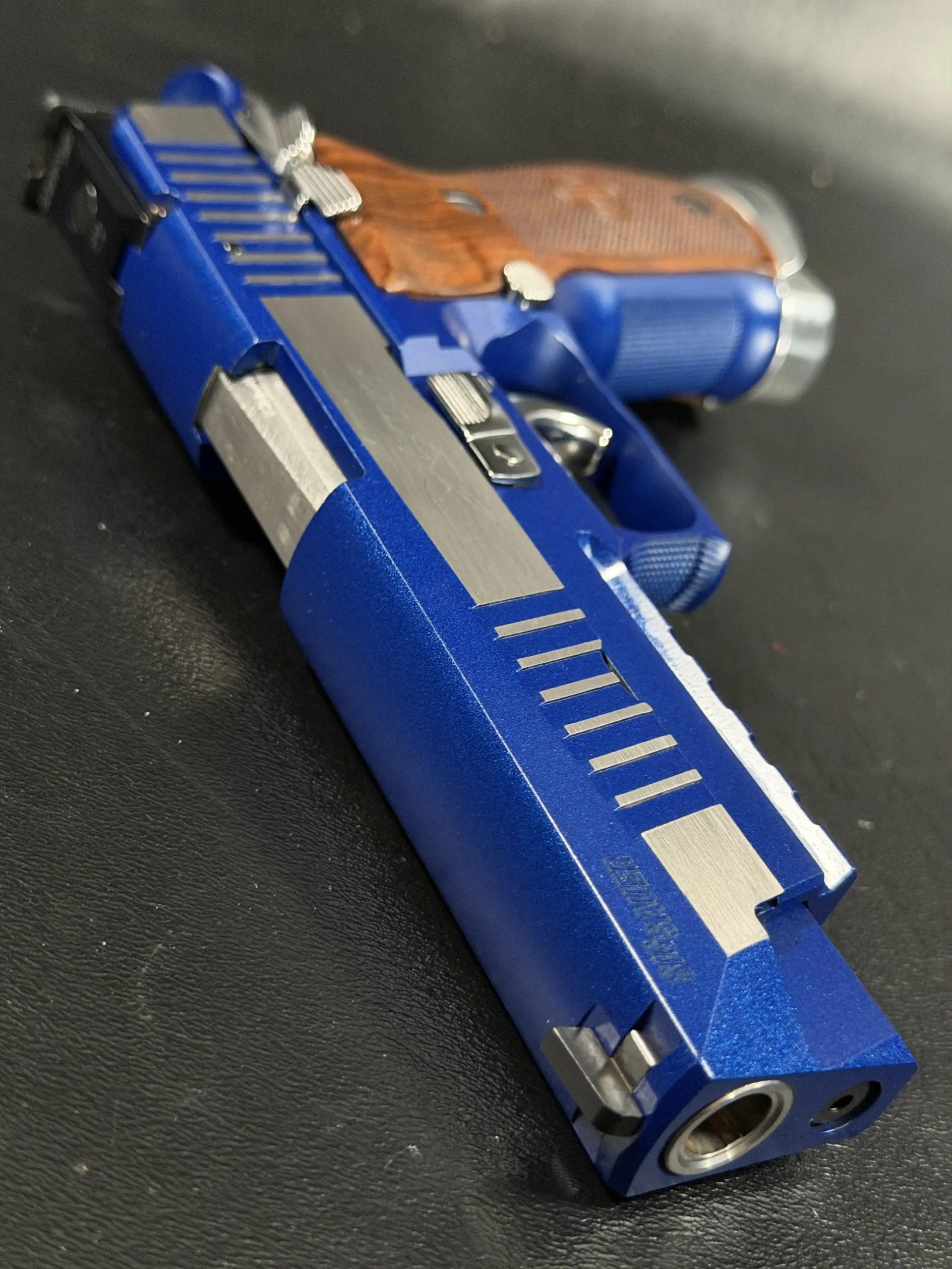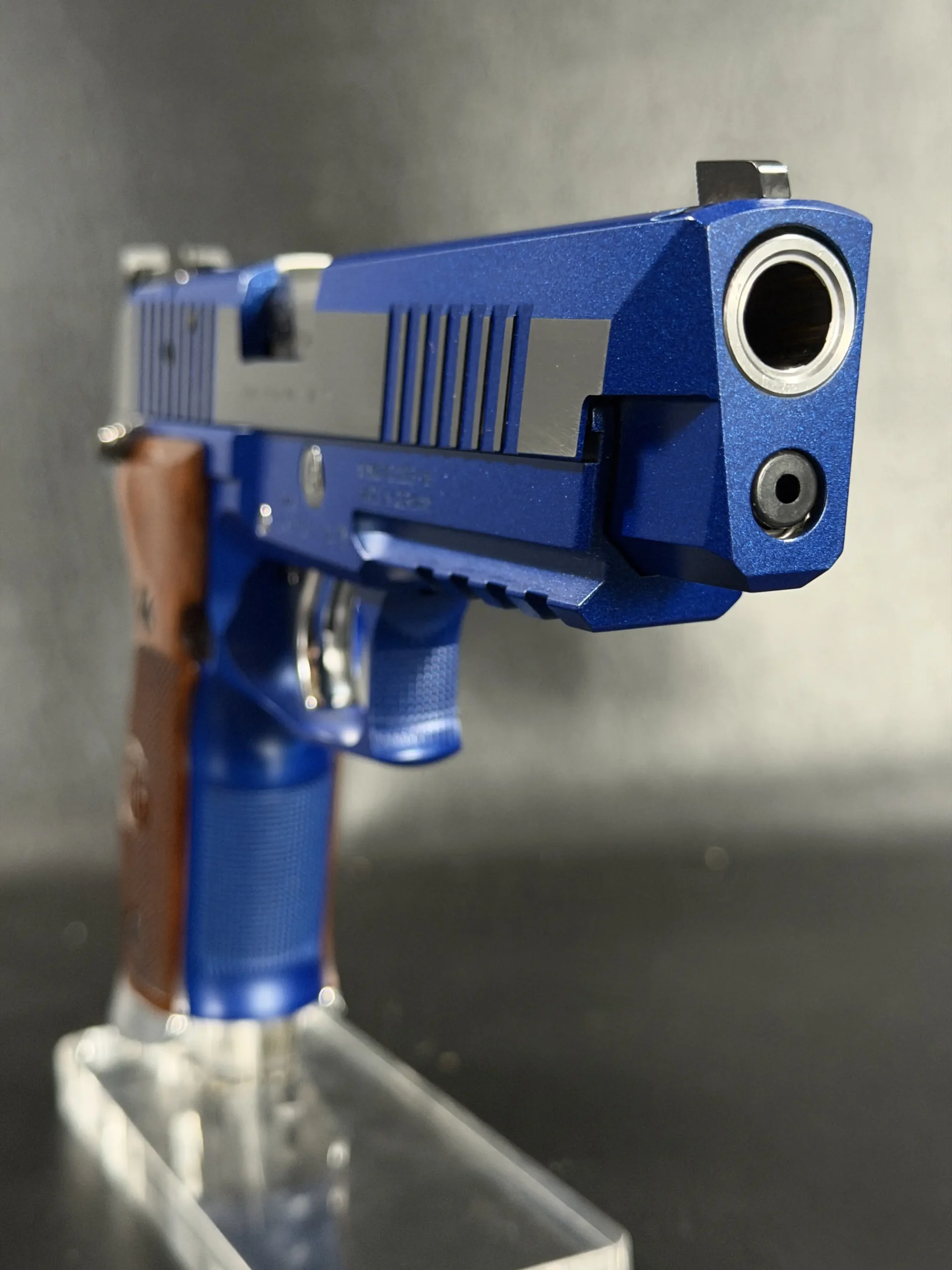 Crafted with meticulous precision, the X-5 Blue Moon GEN-2 delivers the reliability and accuracy that SIG Sauer is famous for. Built on the solid X-Series platform, it is tailored for enthusiasts who appreciate the power and functionality of the P226 and its visual appeal. This GEN-2 model comes with upgraded walnut grips that offer a comfortable, secure hold, adding a touch of classic elegance to the modern design.