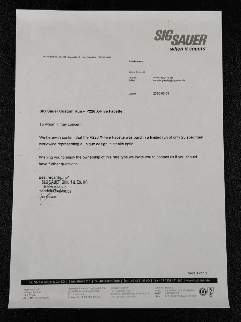 For serious shooters and collectors alike, the P226 X-Five Facet SAO captures everything that made the Mastershop legendary — precision, durability, and unmistakable style. It’s not just a firearm. It’s the embodiment of modern SIG Sauer craftsmanship at its finest.