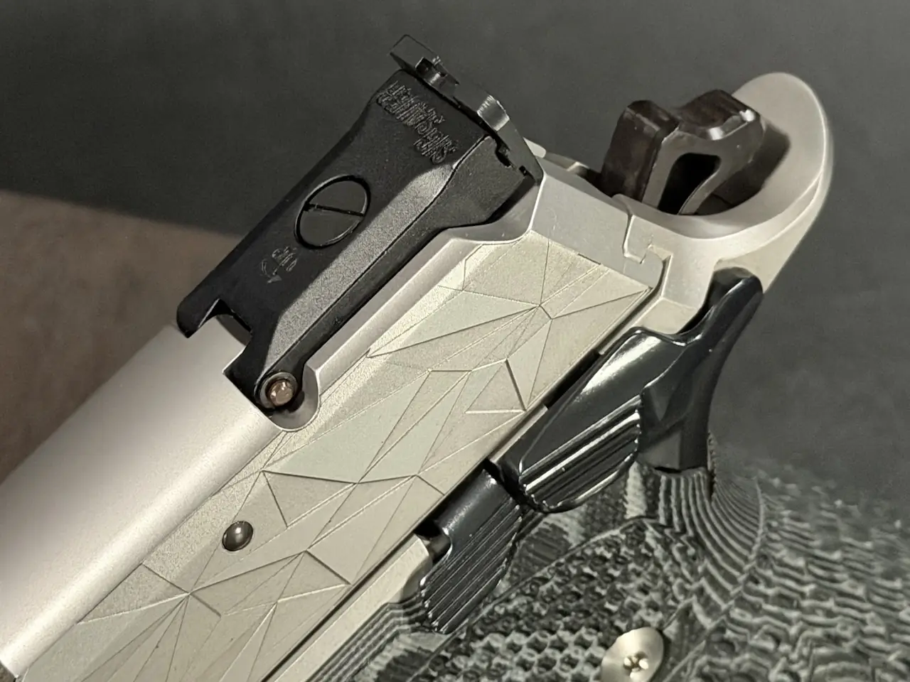 What truly sets this model apart is its signature “Facet” slide design, a striking geometric pattern that catches light in sharp, angular reflections. It’s bold but refined, modern yet rooted in tradition. The design doesn’t just look good; it reinforces the pistol’s strength and balance. Combined with the all-stainless steel construction of both frame and slide, the Facet SAO feels like a solid, sculpted piece of performance art in your hand.