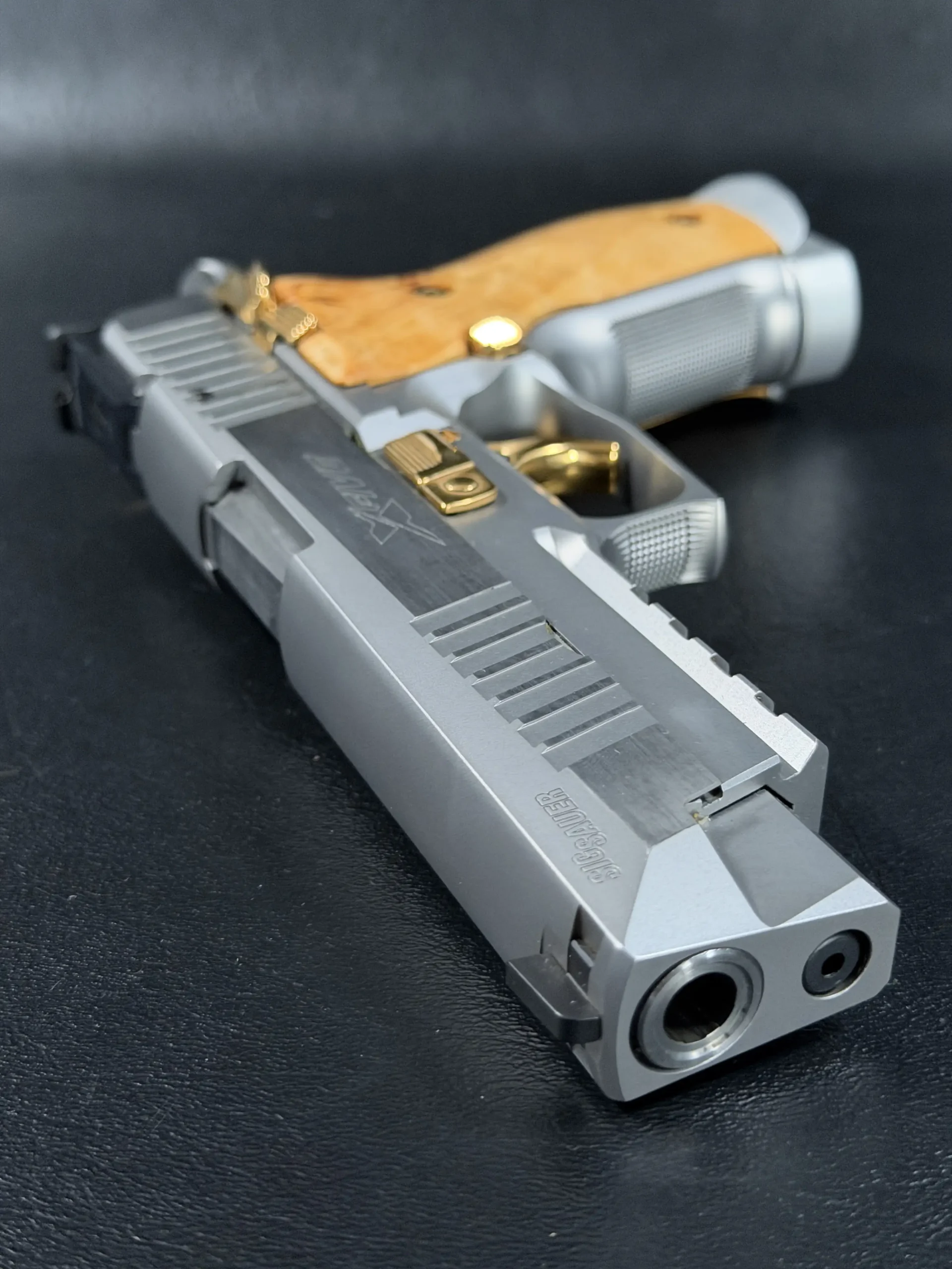 Chambered in 9mm, the X-Five Scandic features the long, heavy X-Five slide and frame geometry that deliver exceptional recoil control and a smooth, flat-shooting impulse. The two-tone stainless and matte surfaces emphasize the pistol’s purposeful lines, while the gold-tone controls add a subtle but unmistakable sense of luxury without crossing into excess.