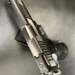 The firearm features a striking two-tone finish that sets it apart. The contrast between the sleek black frame and the polished stainless steel slide gives it a bold yet refined look. This combination enhances its visual appeal and adds to the gun’s durability and wear resistance.