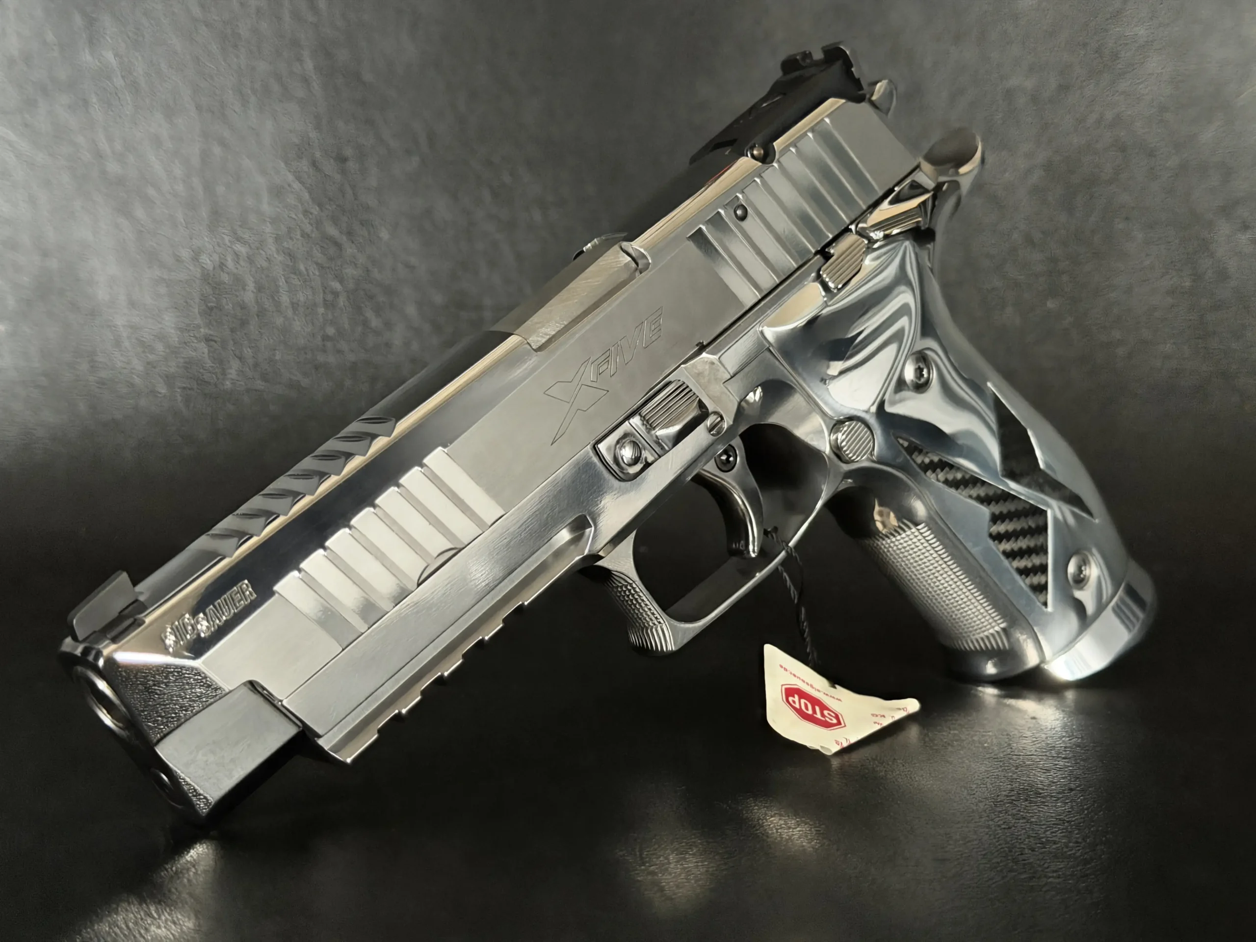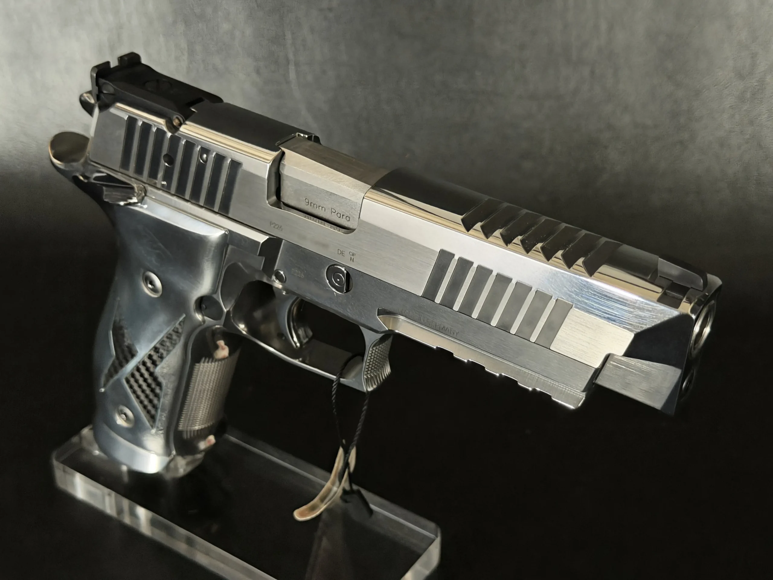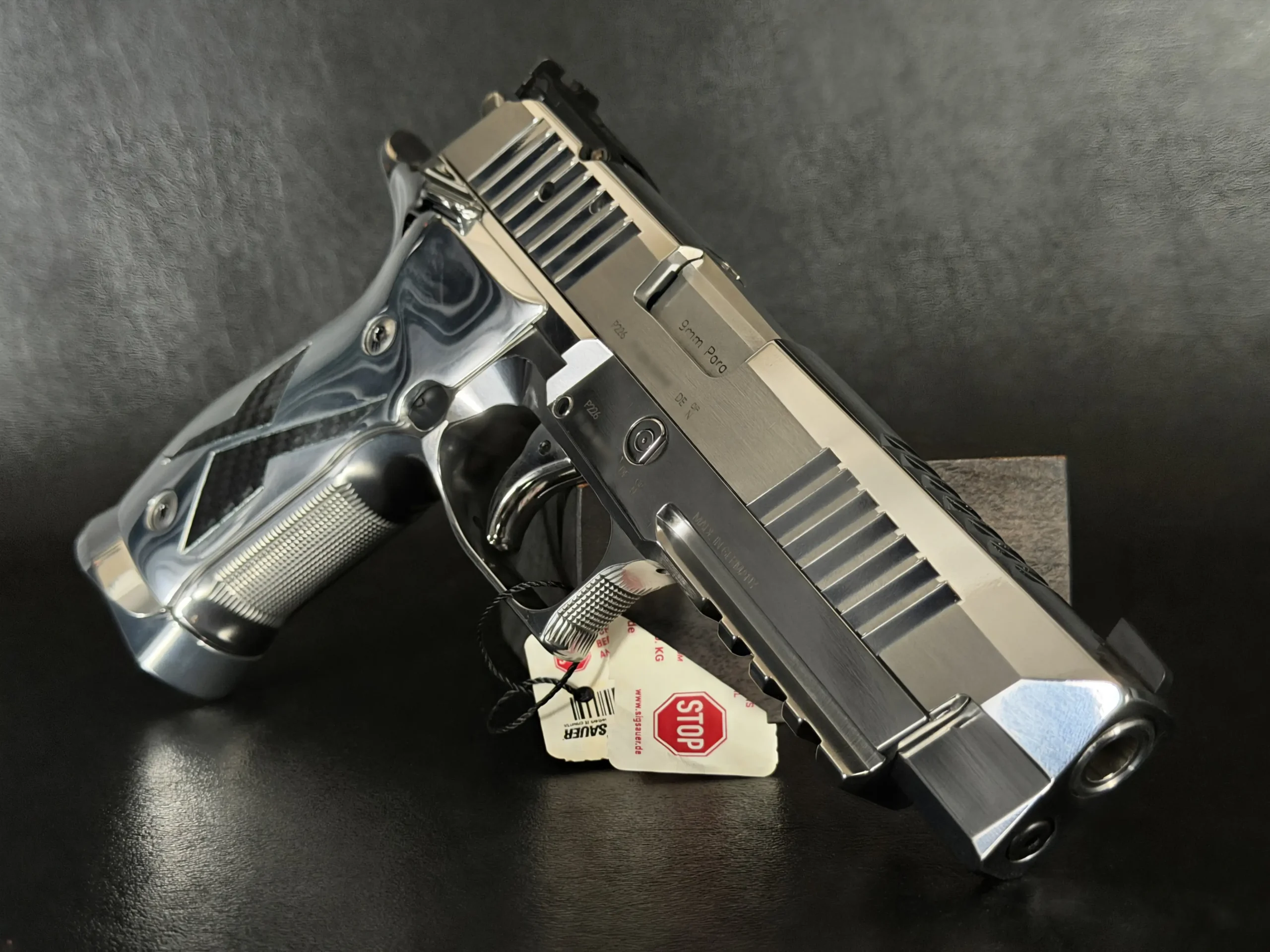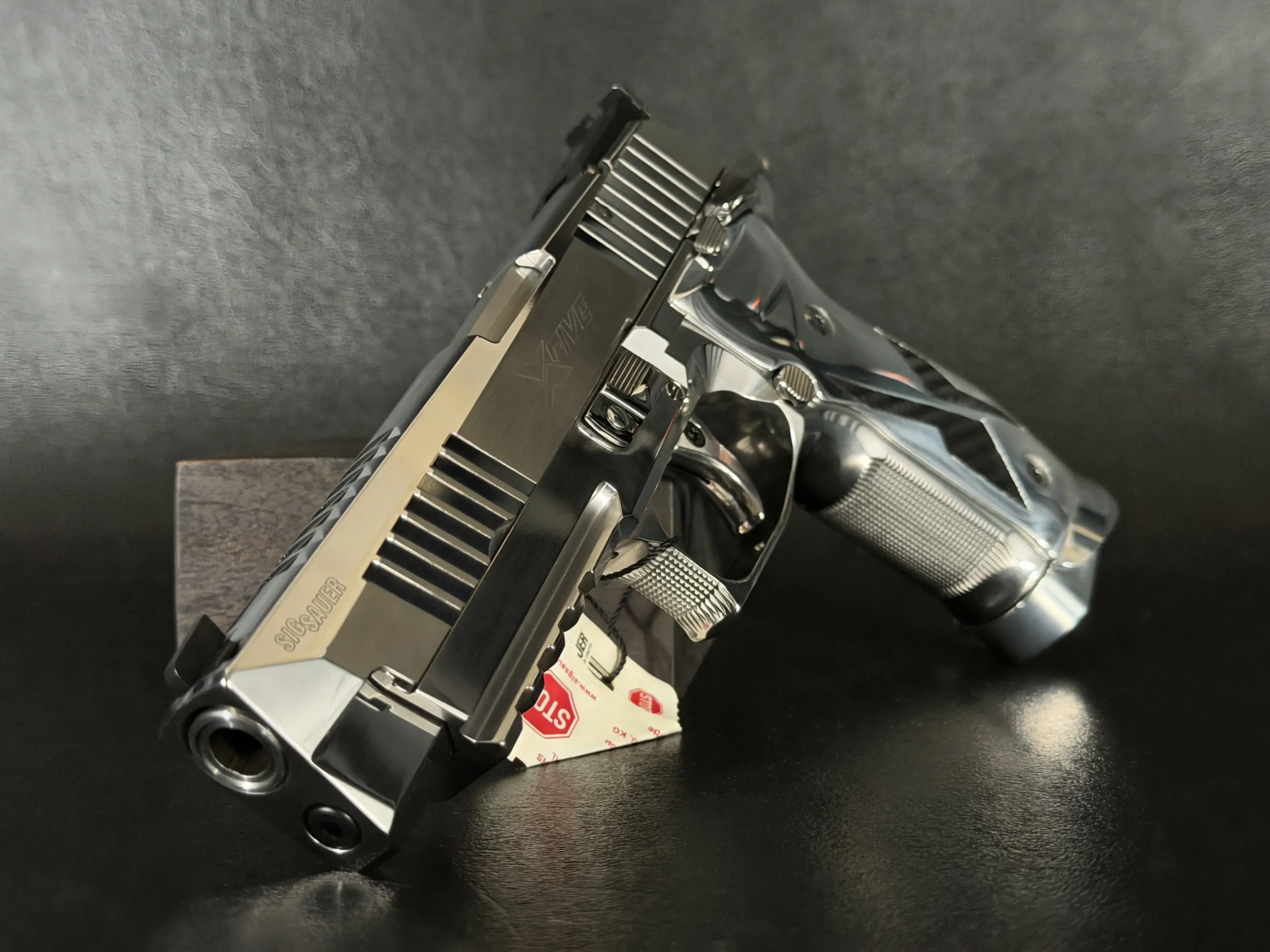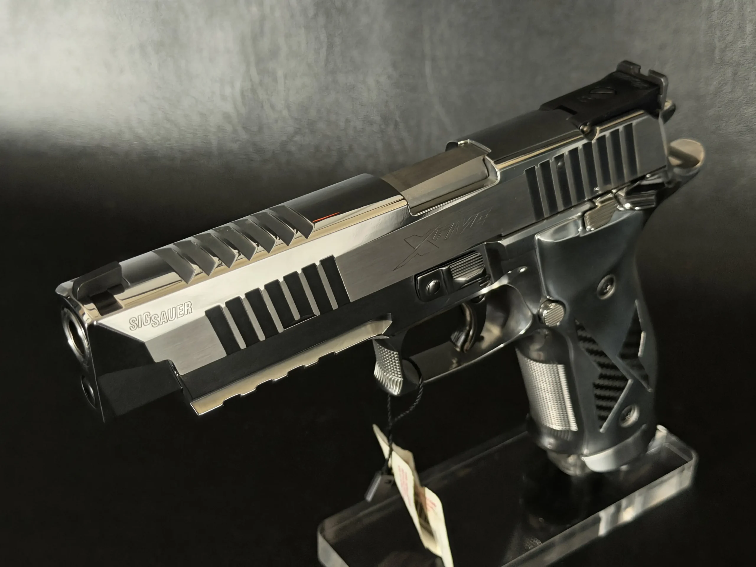 The Sig Sauer P226 X-Five Chrome & Carbon is a striking expression of German Mastershop precision, blending competition-grade performance with unmistakable visual presence. Built on the renowned X-Five platform, this pistol reflects a time when SIG Sauer pushed beyond pure function and treated the P226 as both a precision instrument and a design statement.