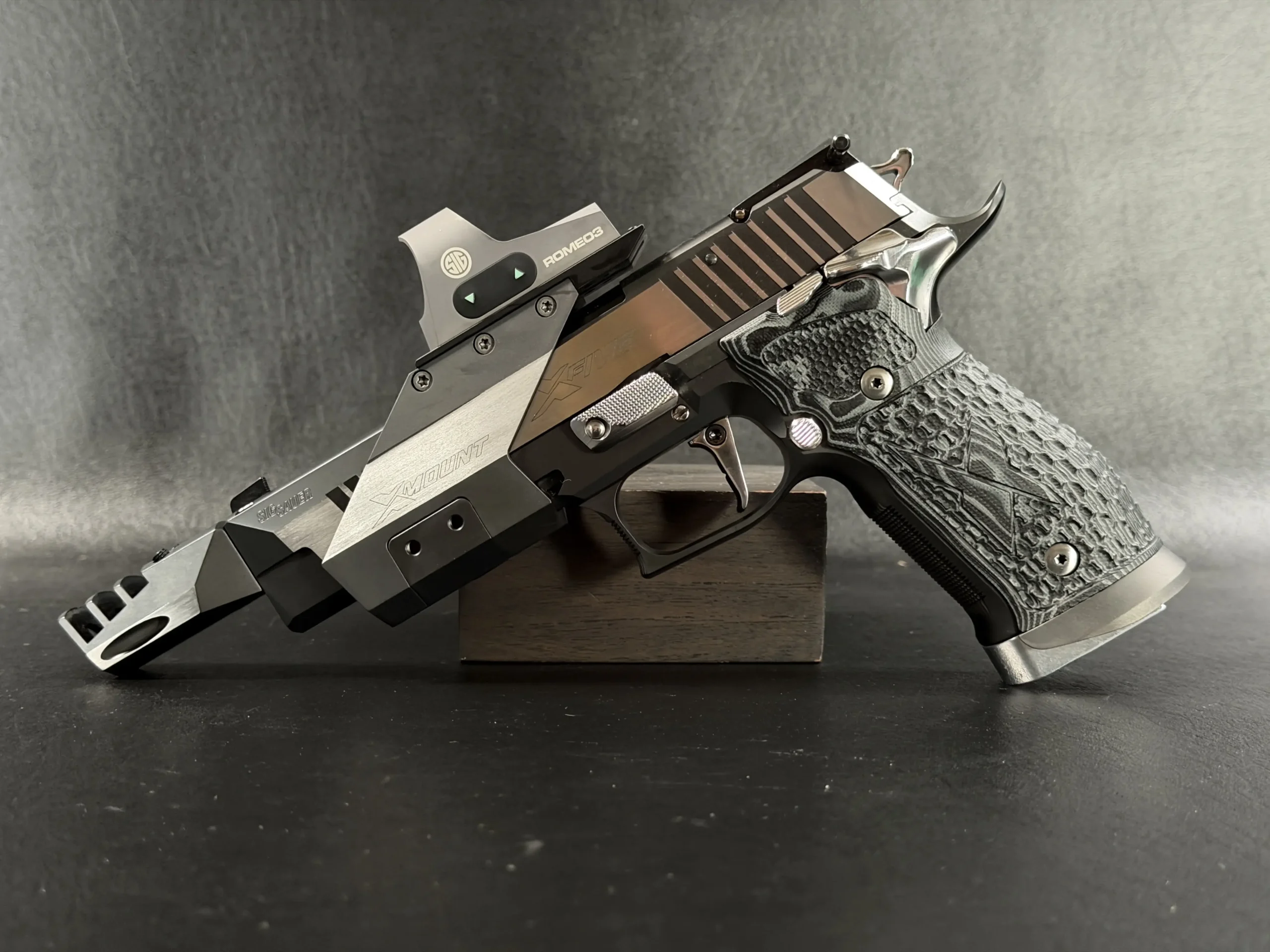 The SIG Sauer P226 X-Five Open Black and White stands apart even within the already rare X-Series lineage. Built by SIG Sauer’s Mastershop, this is a competition-bred pistol executed with an unmistakable sense of design balance, where mechanical purpose and visual restraint meet.