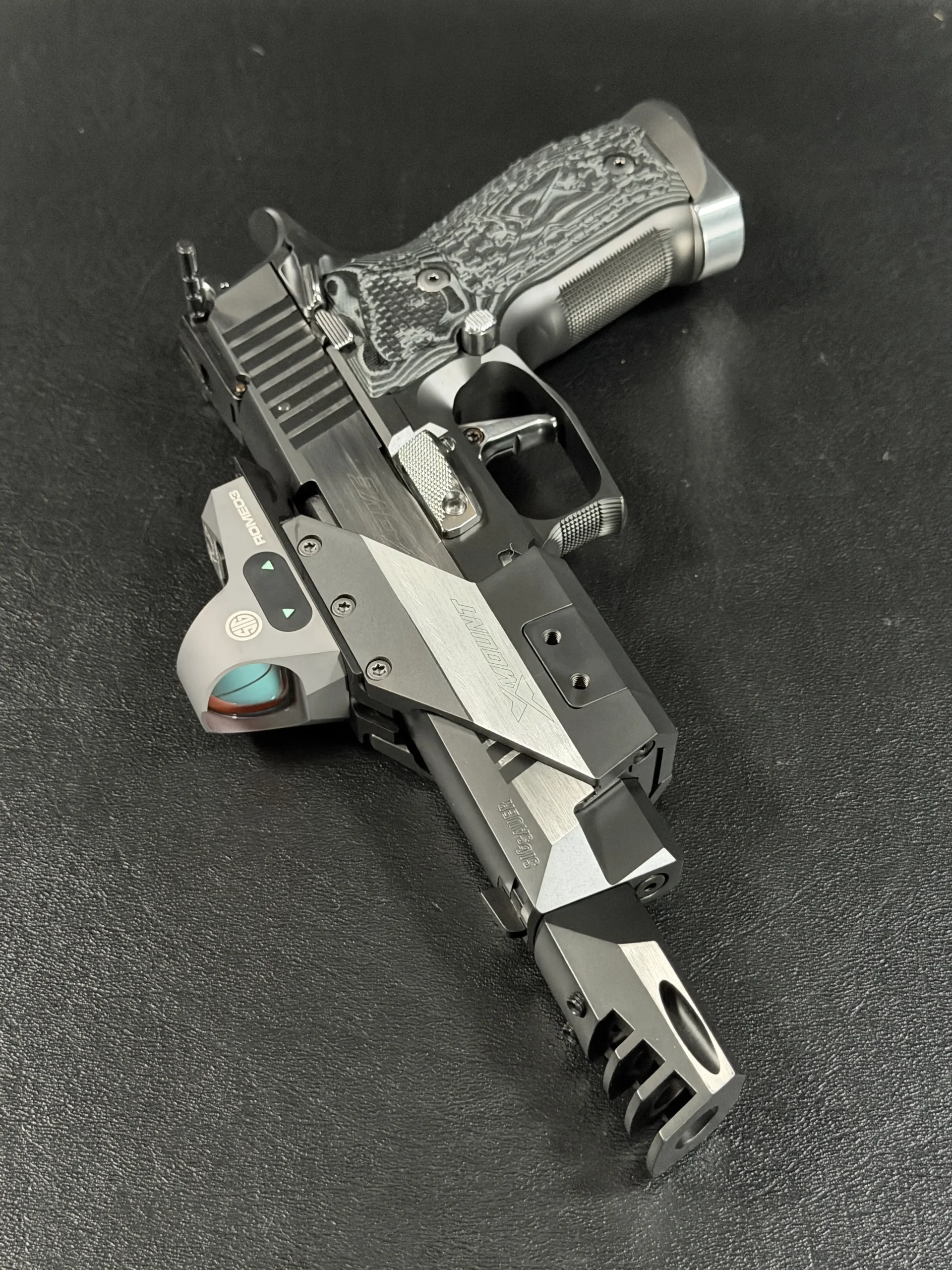 Chambered in 9mm, this X-Five Open reflects SIG Sauer’s uncompromising approach to performance. The trigger is tuned for precision, the controls are extended and perfectly placed, and the ergonomics remain unmistakably X-Series, solid, planted, and confidence-inspiring. The mounted optic integrates seamlessly into the overall architecture, reinforcing the pistol’s purpose-built competition DNA.