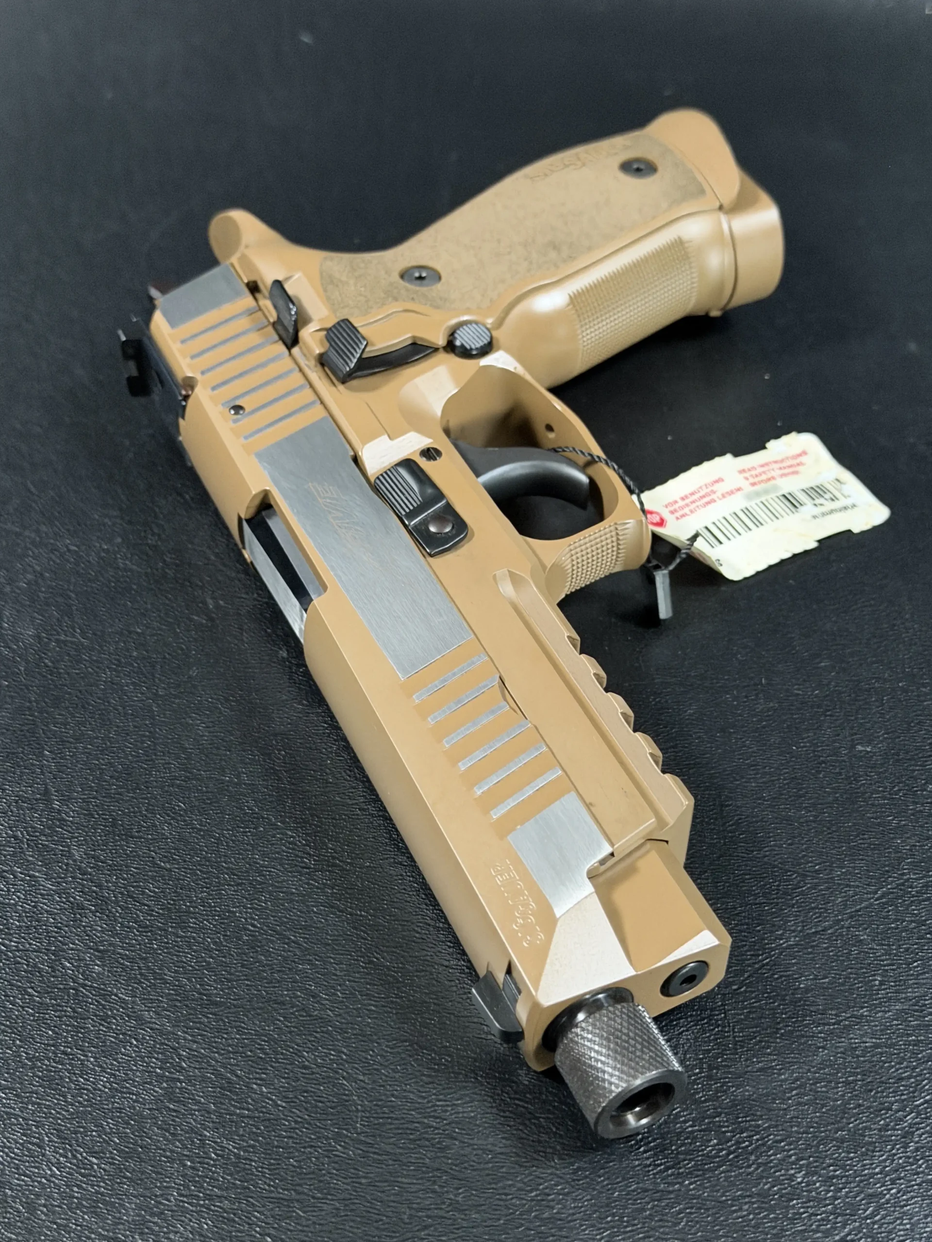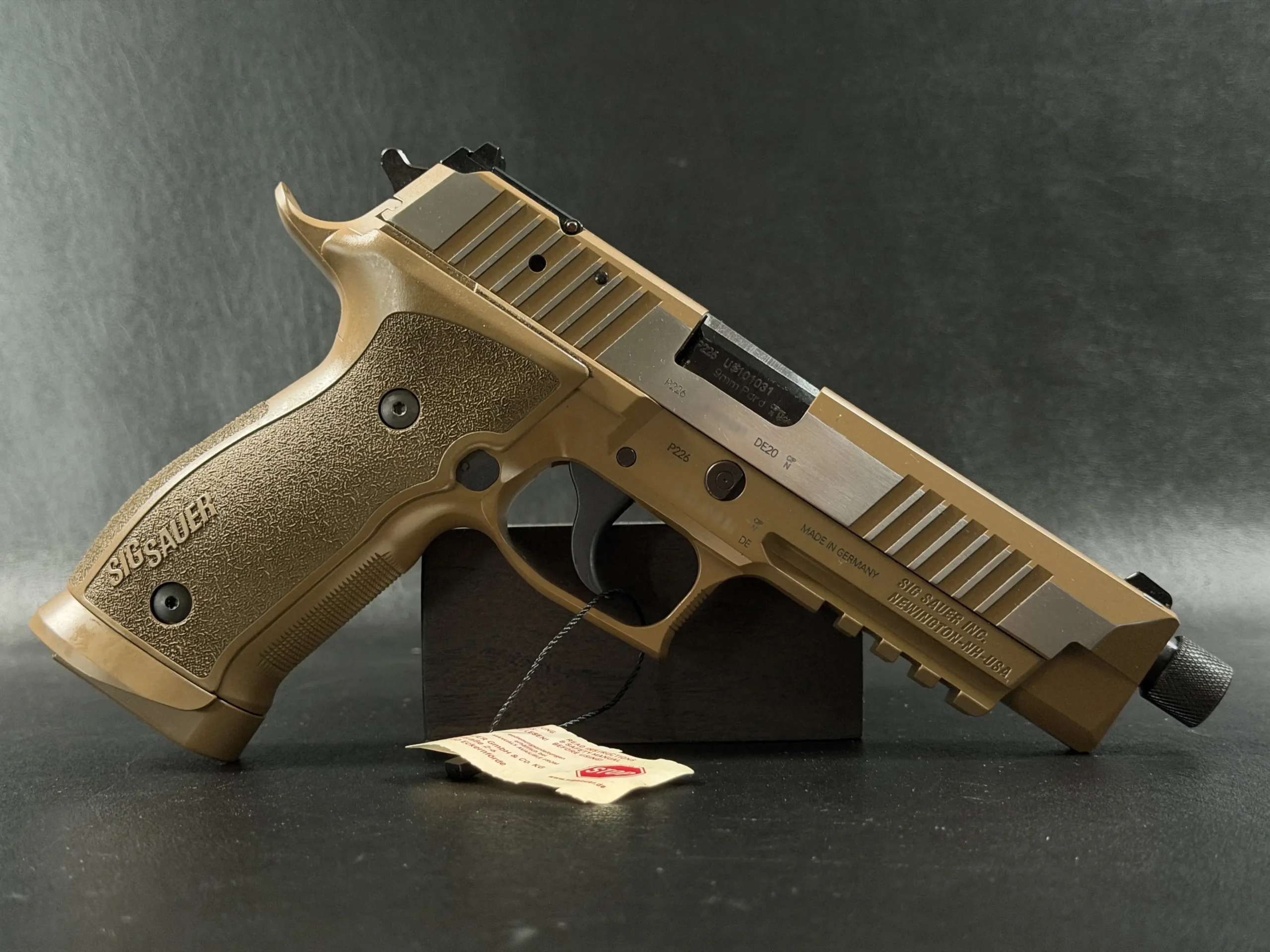 The SIG Sauer P226 X-Five Tactical FDE is already a scarce and purposeful variant within the X-Series lineup, but this example elevates itself further through a rarely encountered two-tone slide configuration, a subtle yet unmistakable departure from the standard monochromatic Tactical finish.