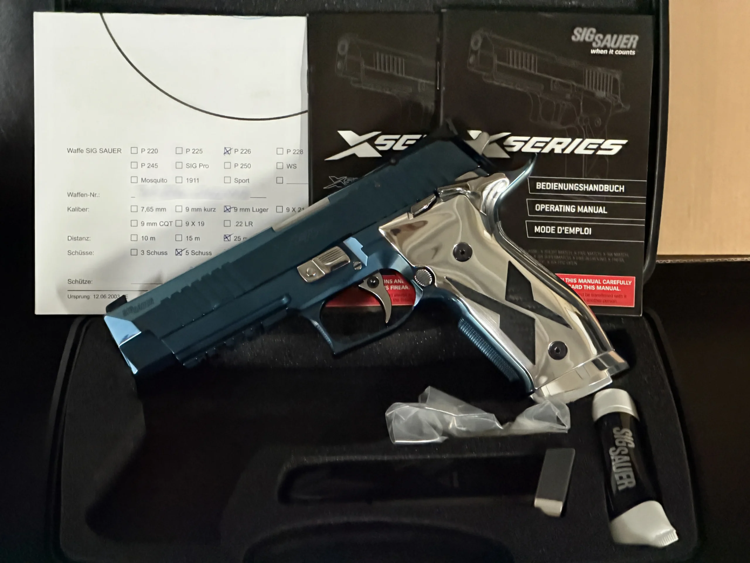 Whether displayed as a centerpiece or preserved as an investment-grade artifact, the P226 X-Five Titanium Blue captures everything collectors chase: rarity, craftsmanship, and that impossible-to-replicate Mastershop aura.