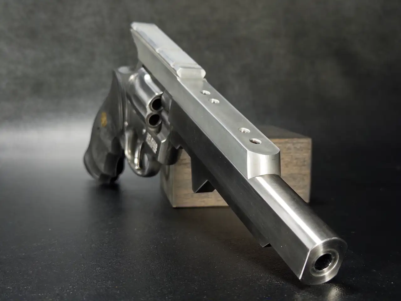 Chambered in .357 Magnum and built on the proven K-frame platform, this revolver carries all the mechanical reliability and balance that made the Model 65 a staple among serious shooters. But what immediately sets this example apart is its unmistakable configuration, most notably the extended, slab-sided heavy barrel with integrated weight and rib, purpose-built for competition stability and rapid target transitions. It’s not just functional, it’s striking.