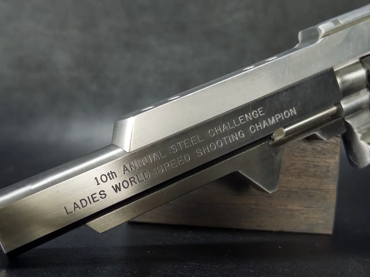 What makes this piece especially compelling is its dual identity. On one hand, it’s a purpose-driven competition revolver, engineered for speed, control, and accuracy. On the other hand, it’s a historical artifact tied to a specific championship and a recognizable figure in the sport. That combination is increasingly difficult to find.