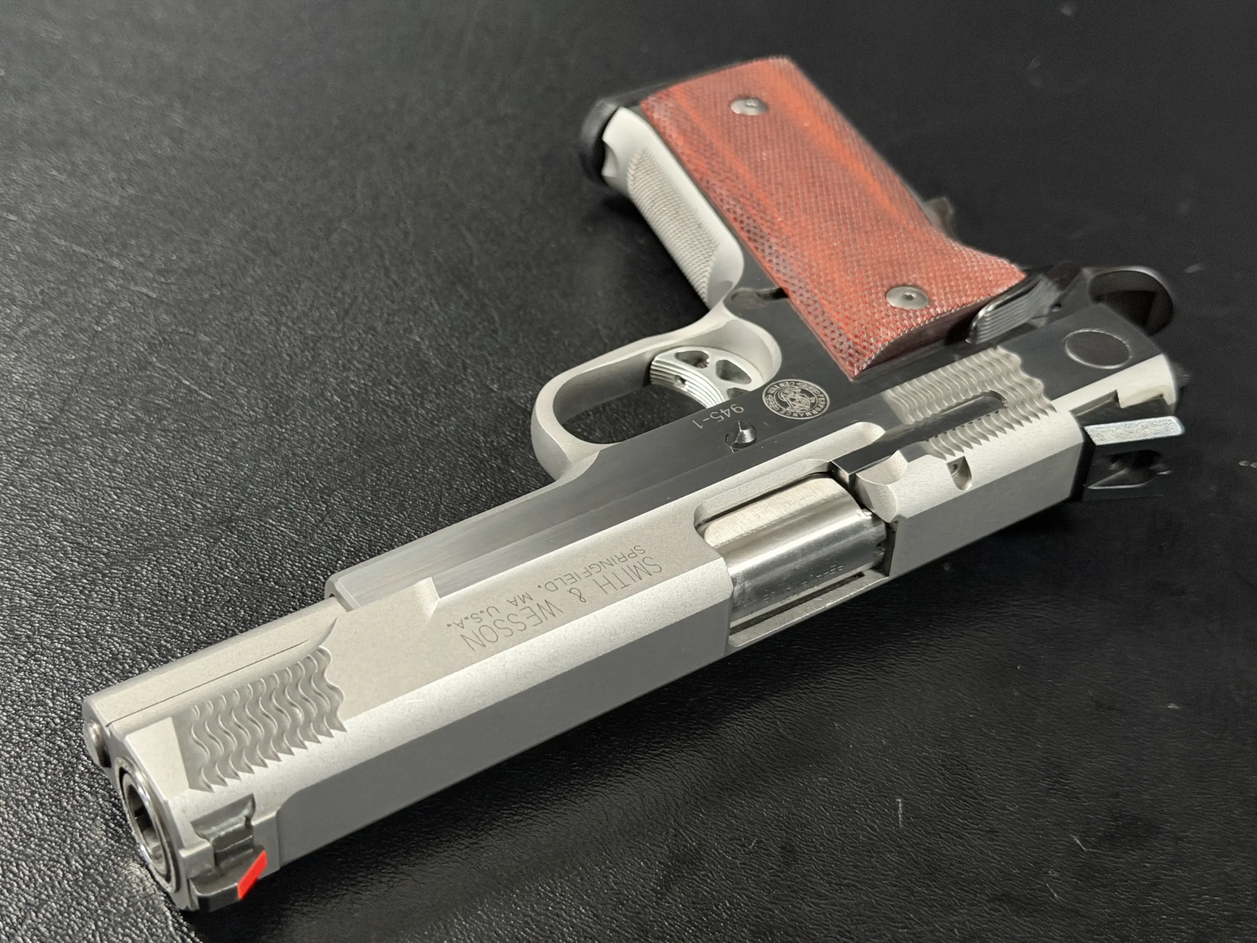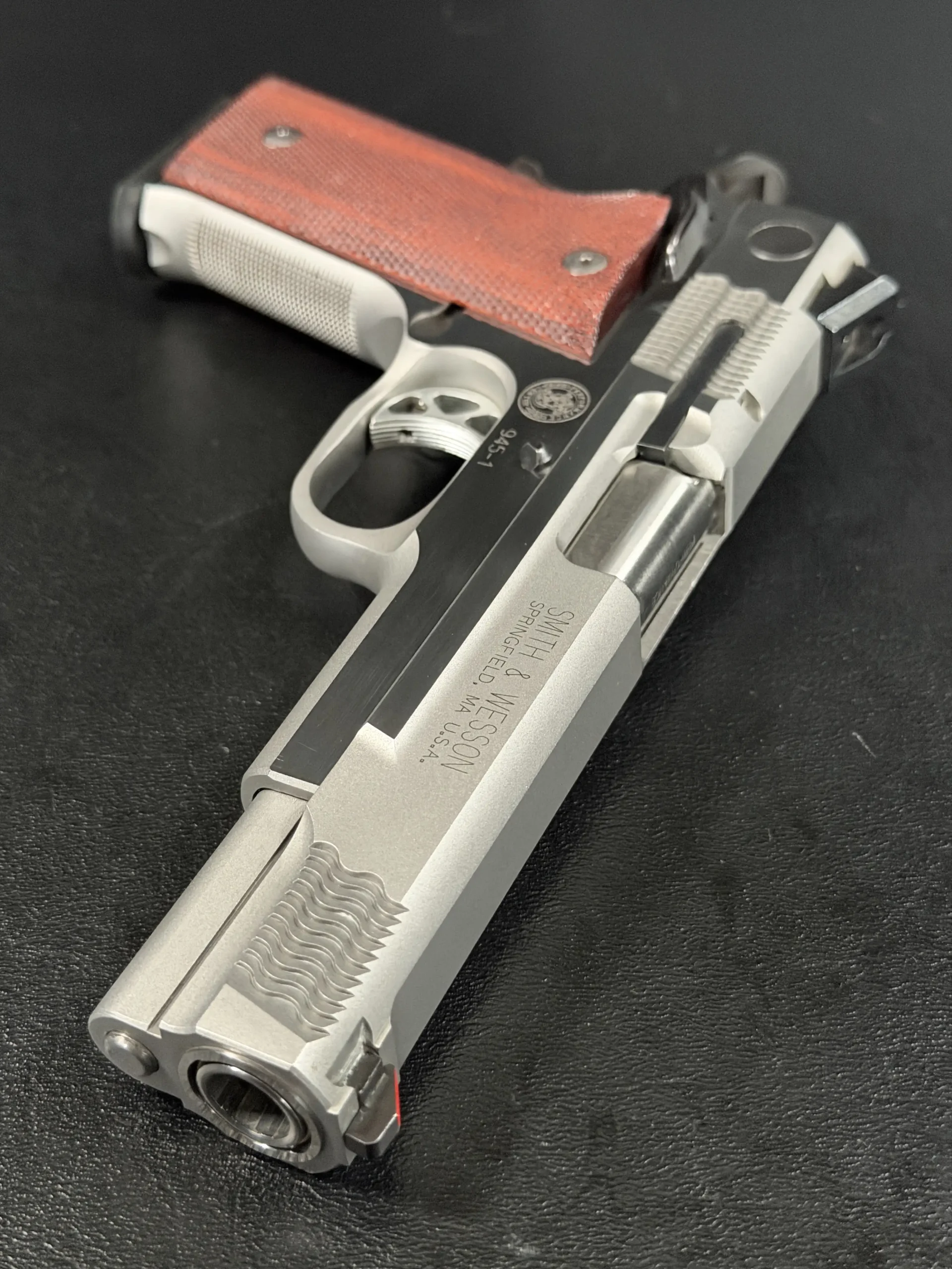 Internally, the Model 945 differs significantly from a conventional 1911. While it retains the familiar single-action trigger system and general layout, the pistol was engineered with a proprietary Smith & Wesson locking and slide system, allowing the Performance Center to achieve extremely tight tolerances and exceptional accuracy. The result is a pistol widely praised for its smooth trigger pull, excellent balance, and remarkable precision.
