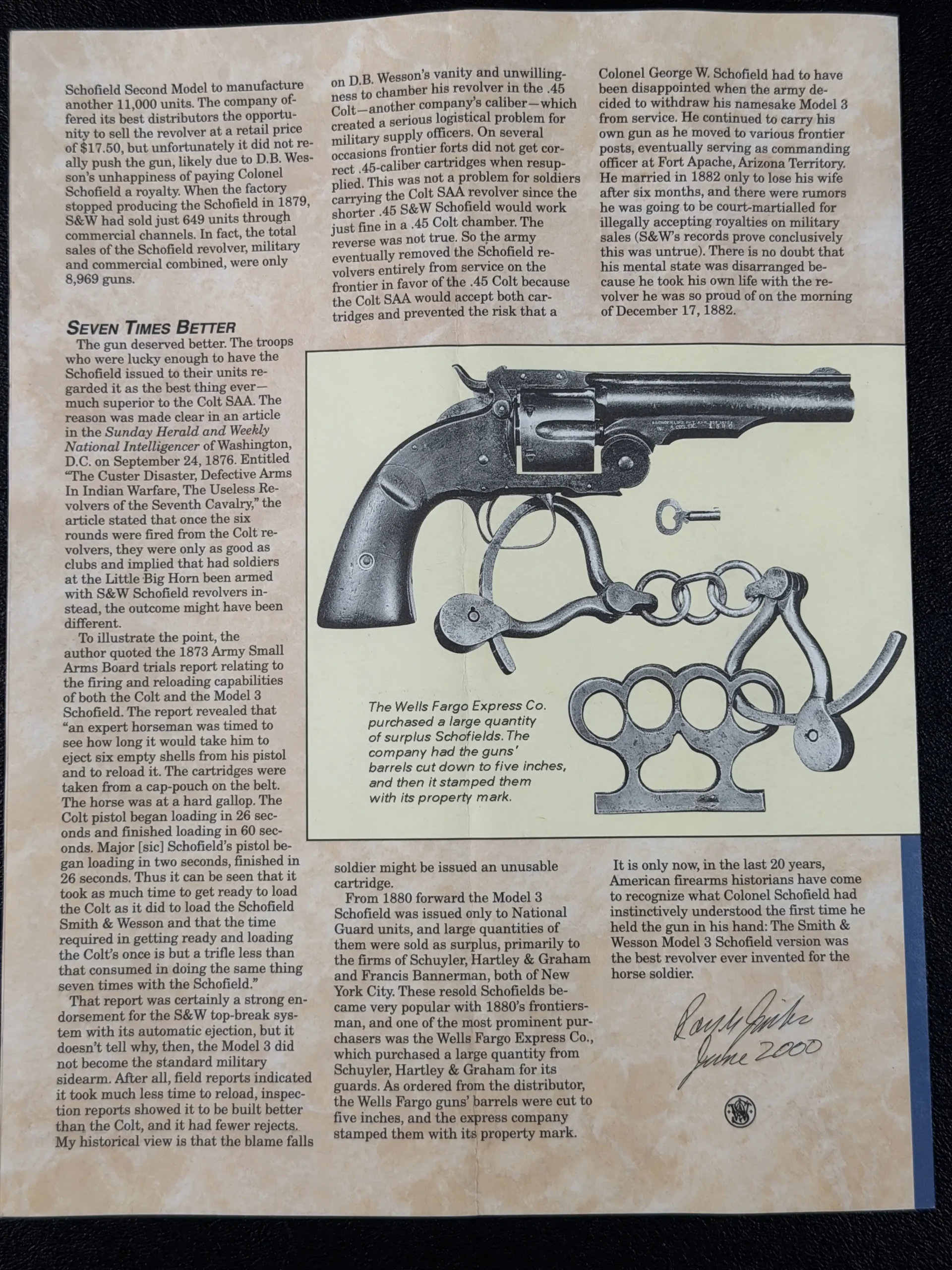 What makes this particular piece especially compelling is its status as a first-production variant, a tangible link to the earliest chapter of Schofield development. It represents not just the design itself, but the moment that design entered real-world service and began to shape firearms history.