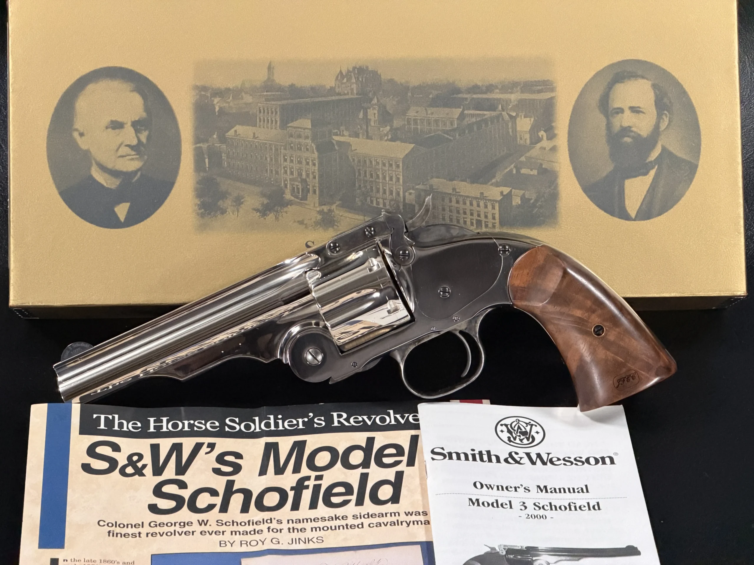 There’s something unmistakable about a Schofield the moment you see it, the long, sweeping barrel, the elegant top-break frame, and that distinctly American balance between function and refinement. This Smith & Wesson Model 3 Schofield First Production example captures that legacy in a way that feels both historical and strikingly alive.