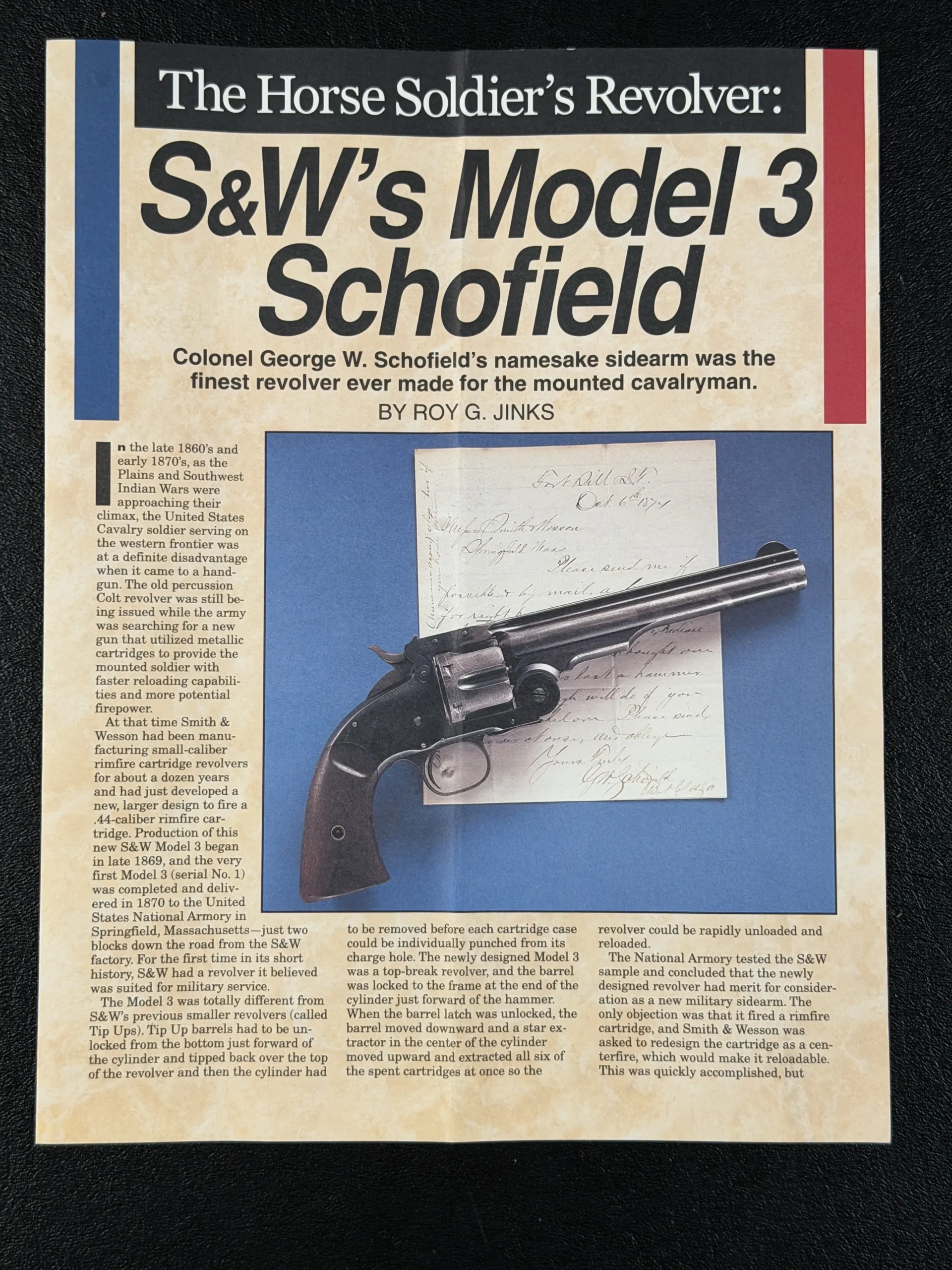 Historically, the Model 3 Schofield saw service across the American frontier, carried by cavalry units and lawmen alike. It earned a reputation for reliability, speed, and ease of use, qualities that set it apart from contemporaries like the Colt Single Action Army. While production numbers were relatively limited compared to other service revolvers of the era, surviving early examples such as this have become increasingly sought after by advanced collectors.