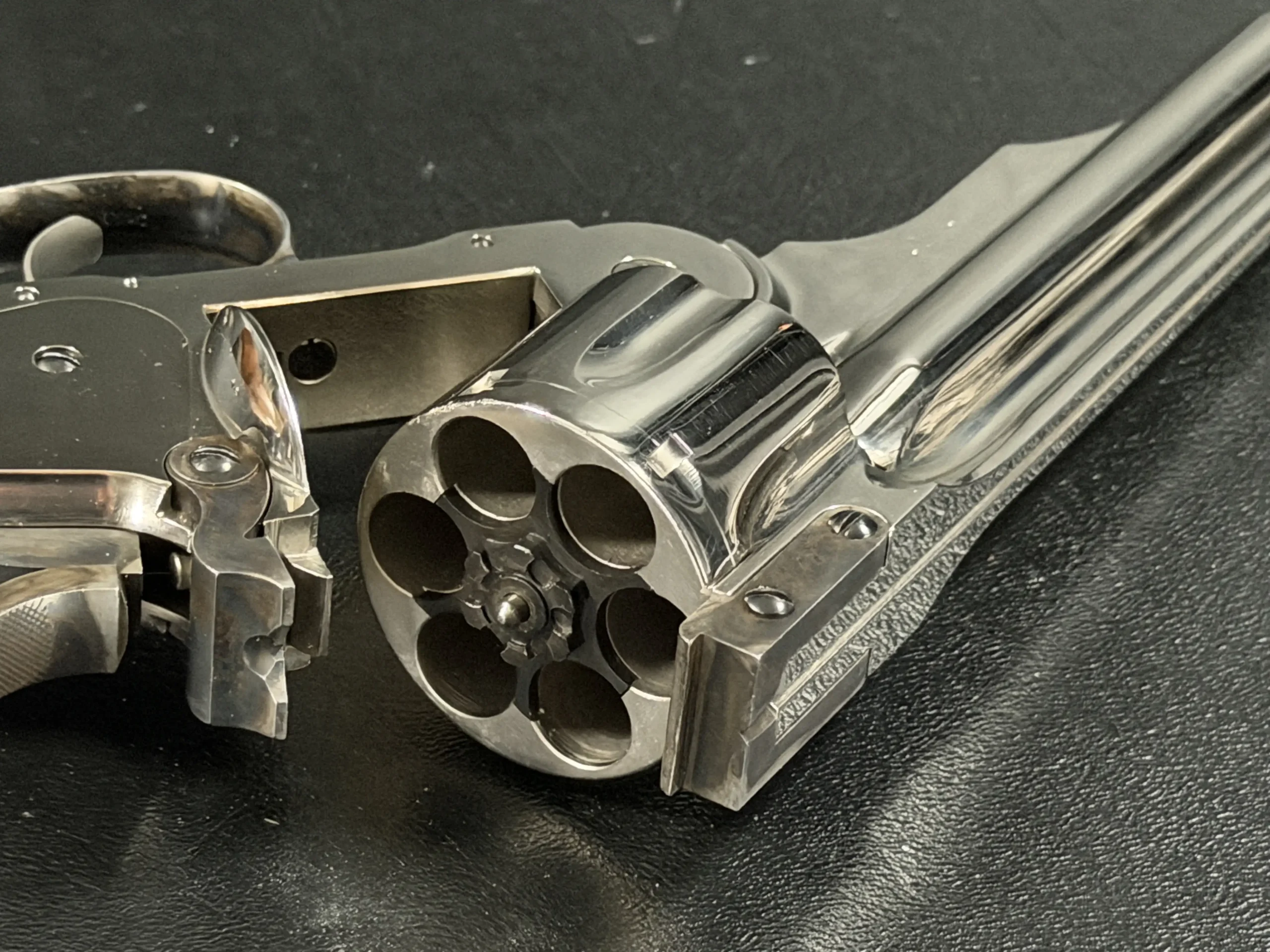 Looking closer, the mechanical artistry becomes even more apparent. The precision of the cylinder machining, the crisp edges of the latch mechanism, and the tight lockup all speak to a time when firearms were built with both durability and pride in mind. The top latch, arguably the defining feature of the Schofield, remains one of the most intuitive and satisfying systems ever put into a revolver.