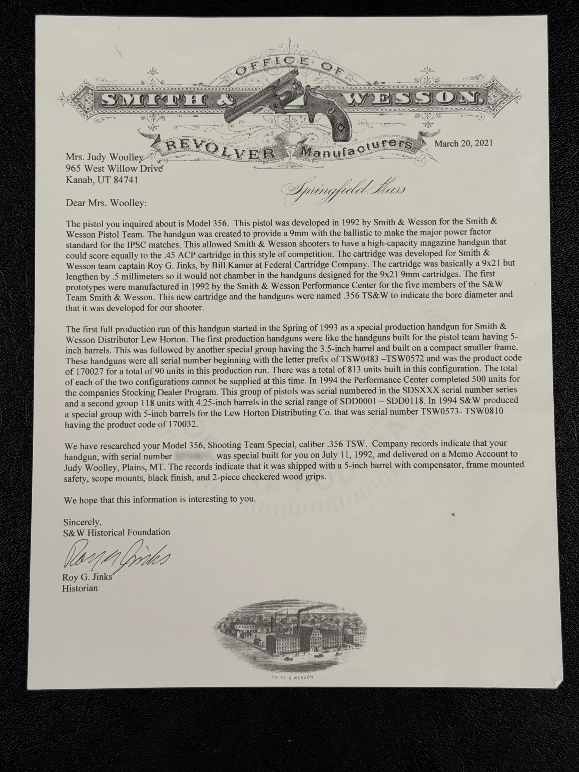 For collectors of rare Performance Center firearms, prototype competition pistols, or historically documented examples connected to notable shooters, the Smith & Wesson Prototype PC Model 356TSW built for Judy Woolley stands as a remarkable artifact from a transformative era in American handgun competition.