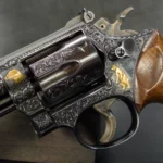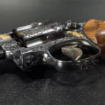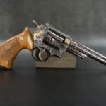There are rare guns—and then there’s this. This 1961 Smith & Wesson Model 53 isn’t just a double-action revolver; it’s a showcase of artistry and legacy rolled into one remarkable piece. Engraved and signed by the renowned Anthony Tuscano, it features four detailed relief gold-inlaid animals nestled within fine scrollwork. His signature, tucked just beneath the cylinder release, is easy to miss—but once you spot it, you realize you’re holding something truly special.